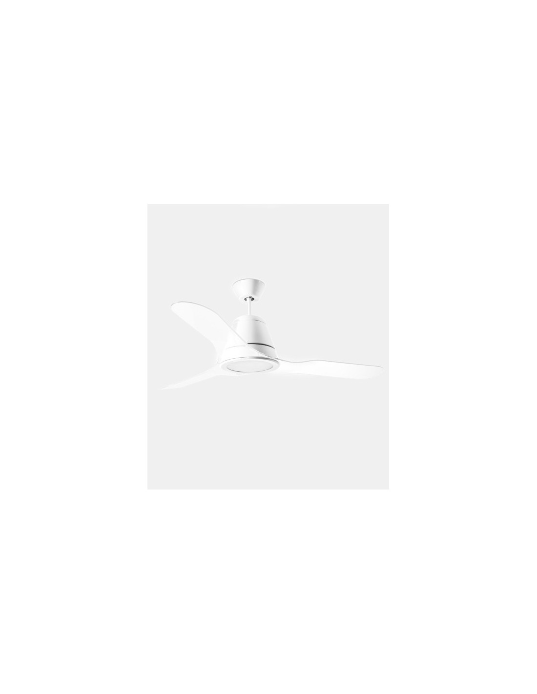 It is a ceiling fan designed by Estudi Ribaudí composed of steel and aluminium in its structure, plastic in the diffuser and a high-strength plastic material such as acrylic in the three blades.