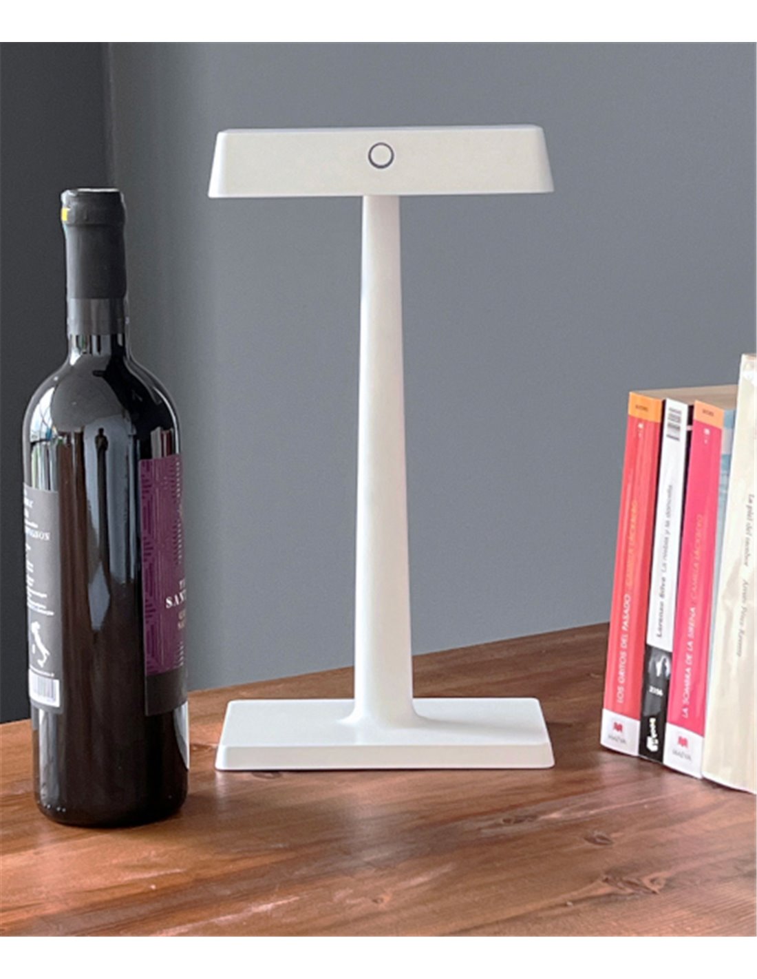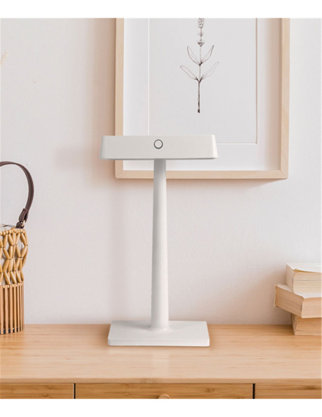 This modern lamp includes a charging base, and it also has a 'touch' button with which it is possible to regulate the light intensity, as well as turning it on and off.