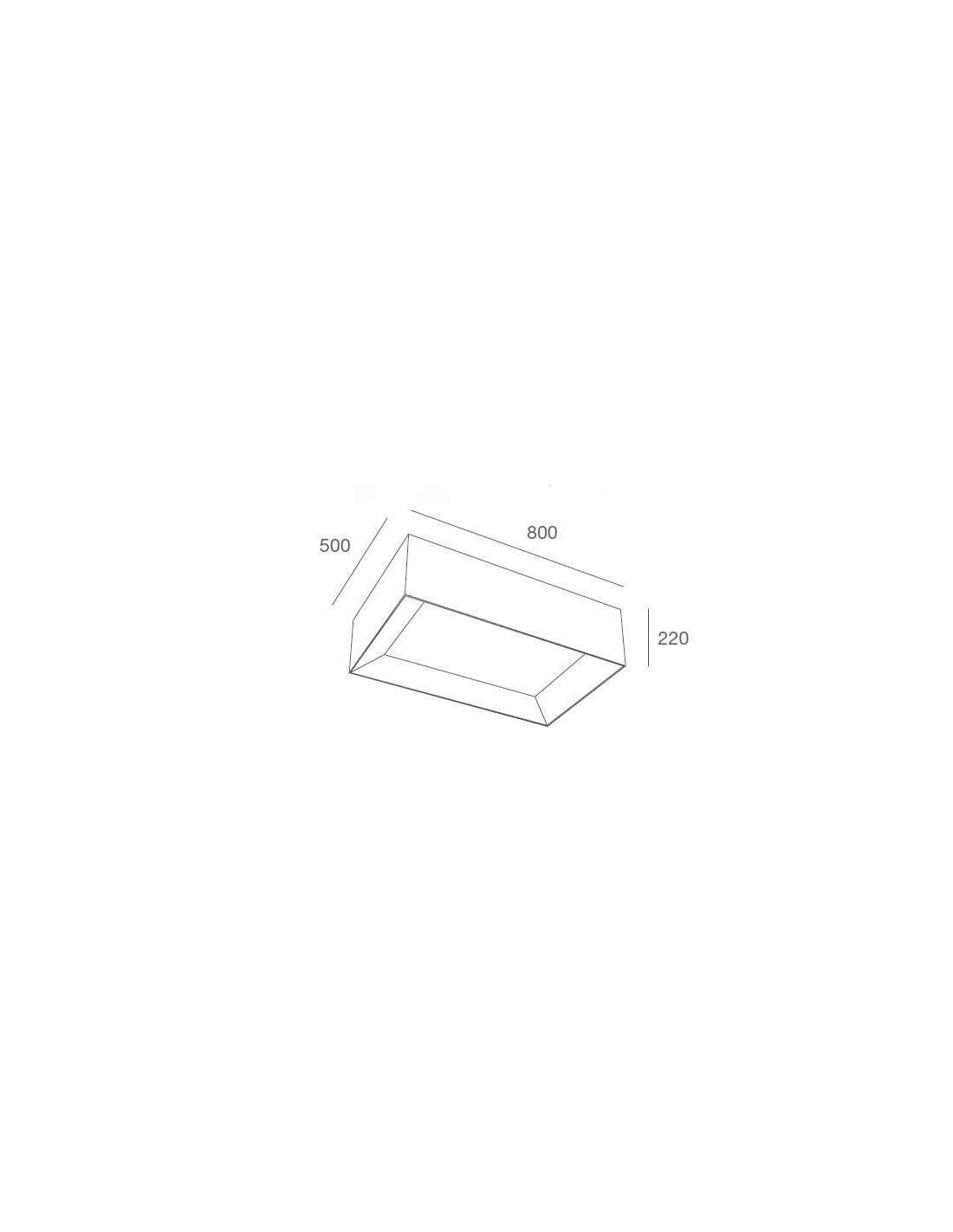Volum is distinguished by its rectangular lampshade, made of opaque cotton fabric, which ensures an even distribution of light, resulting in a cosy and well-lit atmosphere. With dimensions of 22 cm in height, 50 cm in length, and 80 cm in width, it is suitable for a wide range of settings, including living rooms, dining rooms, hallways, and bedrooms.