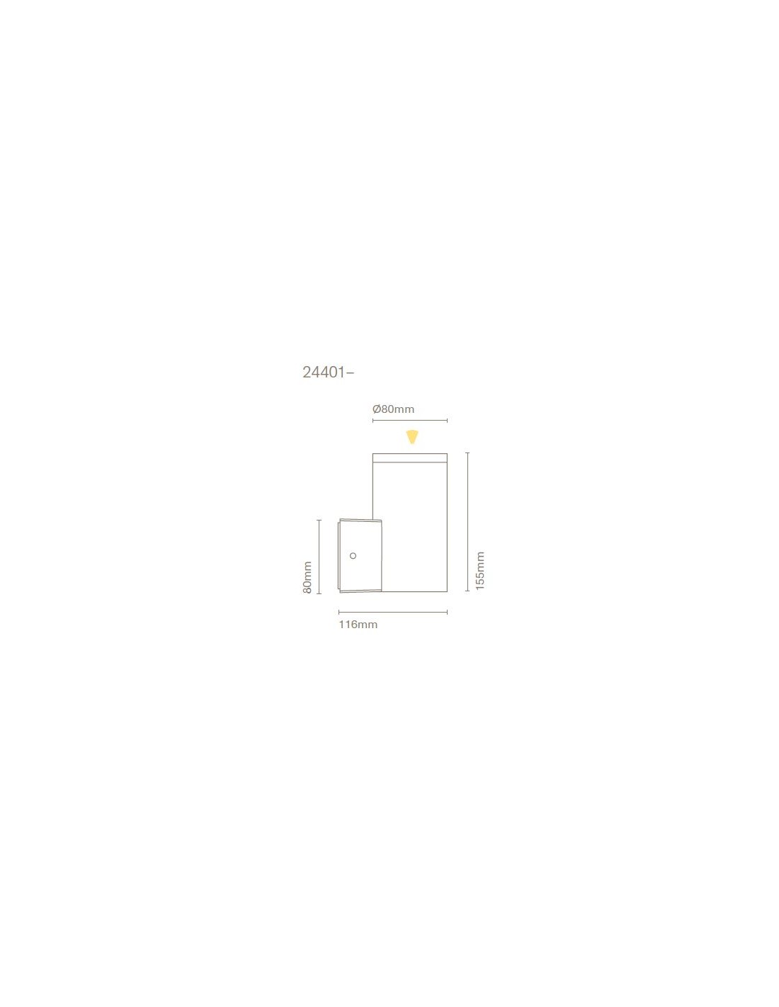 Firstly, there is the smallest outdoor wall light with a diameter of 8 cm, a width of 11.6 cm and a height of 15.5 cm. The degree of opening can be chosen between 15º, 36º and 50º and has an integrated 13W LED light source with a luminous power of 1500 lm.