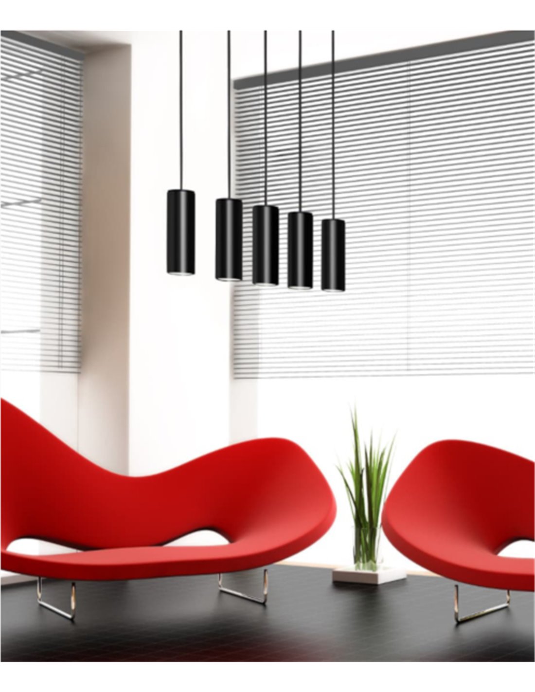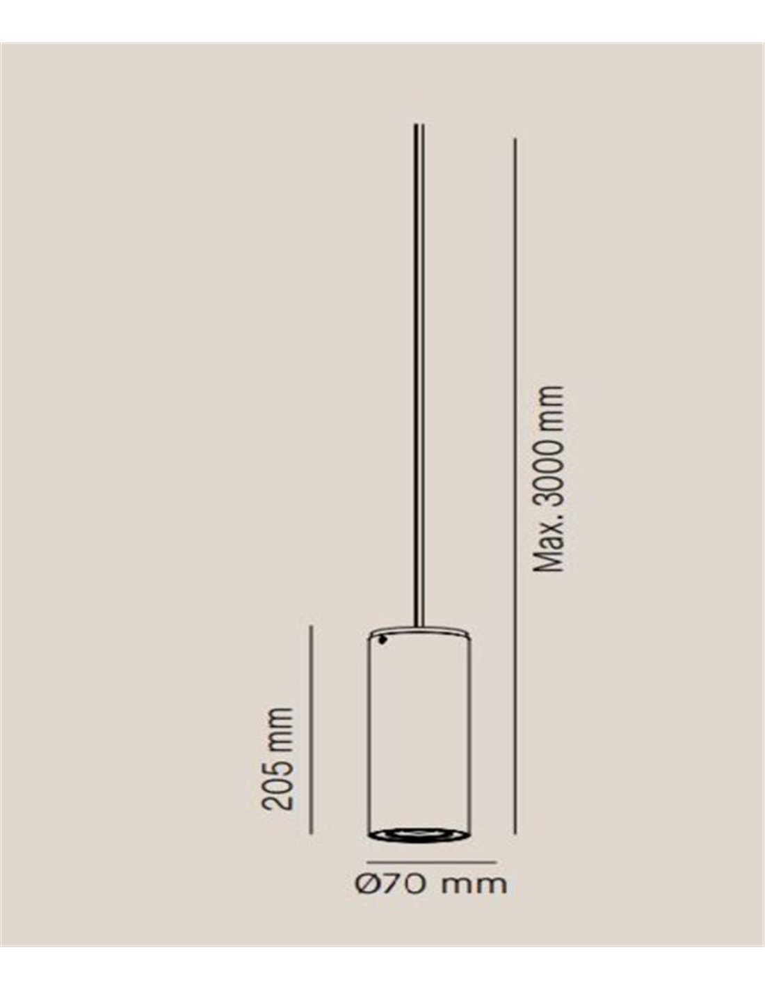 About Milan's Kronn pendant light: tubular design available in 3 colors, cable: 3 meters, 1xGU10