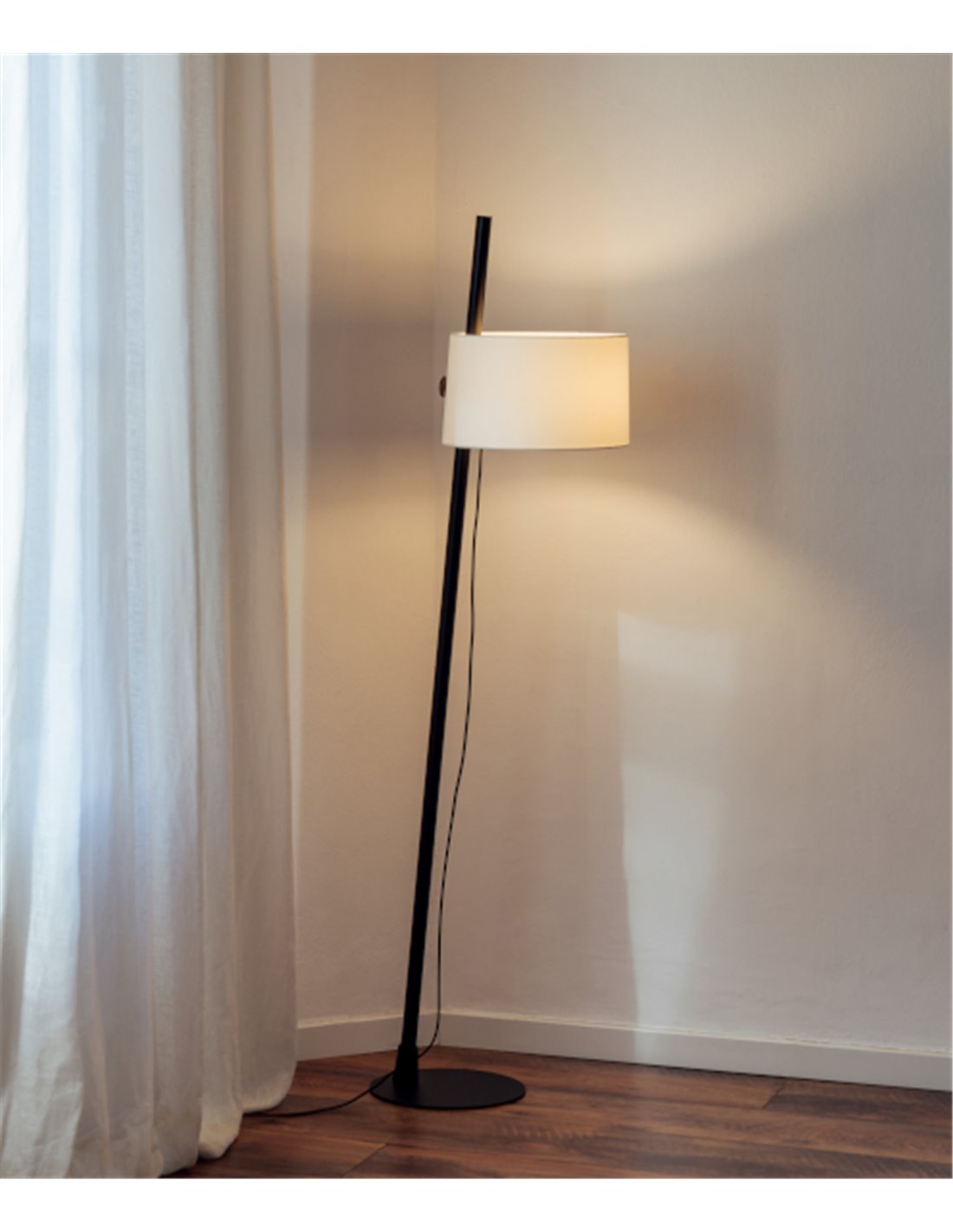 Another important feature is the inclination of the shaft with respect to the base, which adds dynamism and personality to the space. This versatile floor lamp is a great option for illuminating homes with its soft, warm light.