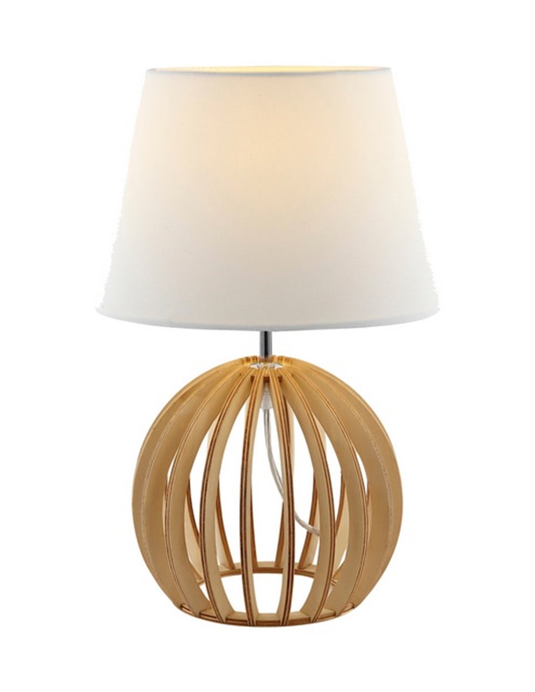 With compact dimensions of 25 cm in diameter and 41 cm in height, it fits easily into small spaces, making it ideal for bedside tables, desks, or side tables. The wooden structure adds a warm, rustic touch, while the white fabric shade ensures pleasant, non-glare light diffusion.