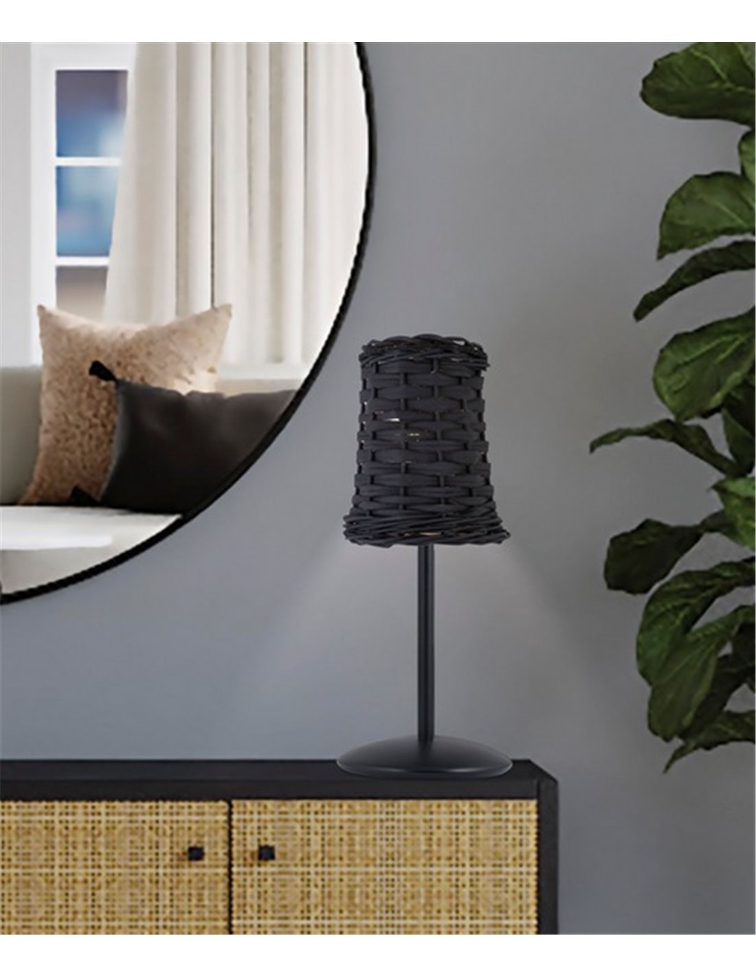 - Alexia table lamp - AJP - Black metal+wicker 36 cm