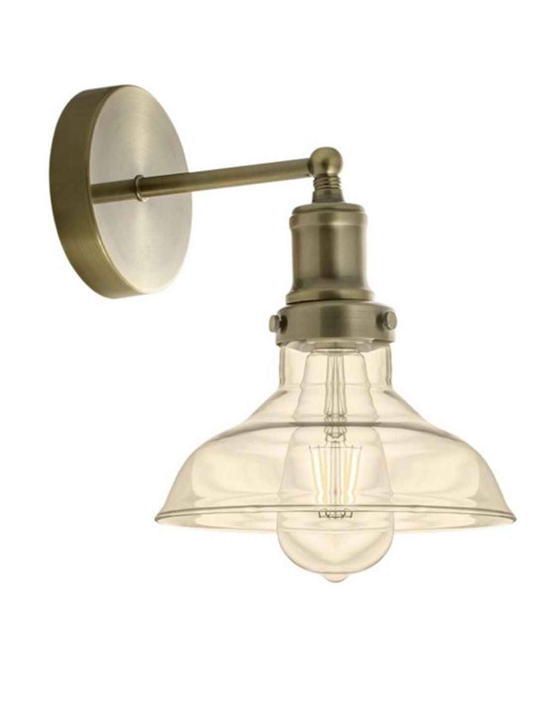 About AJP Candeiro wall light; vintage lamp with amber glass lampshade