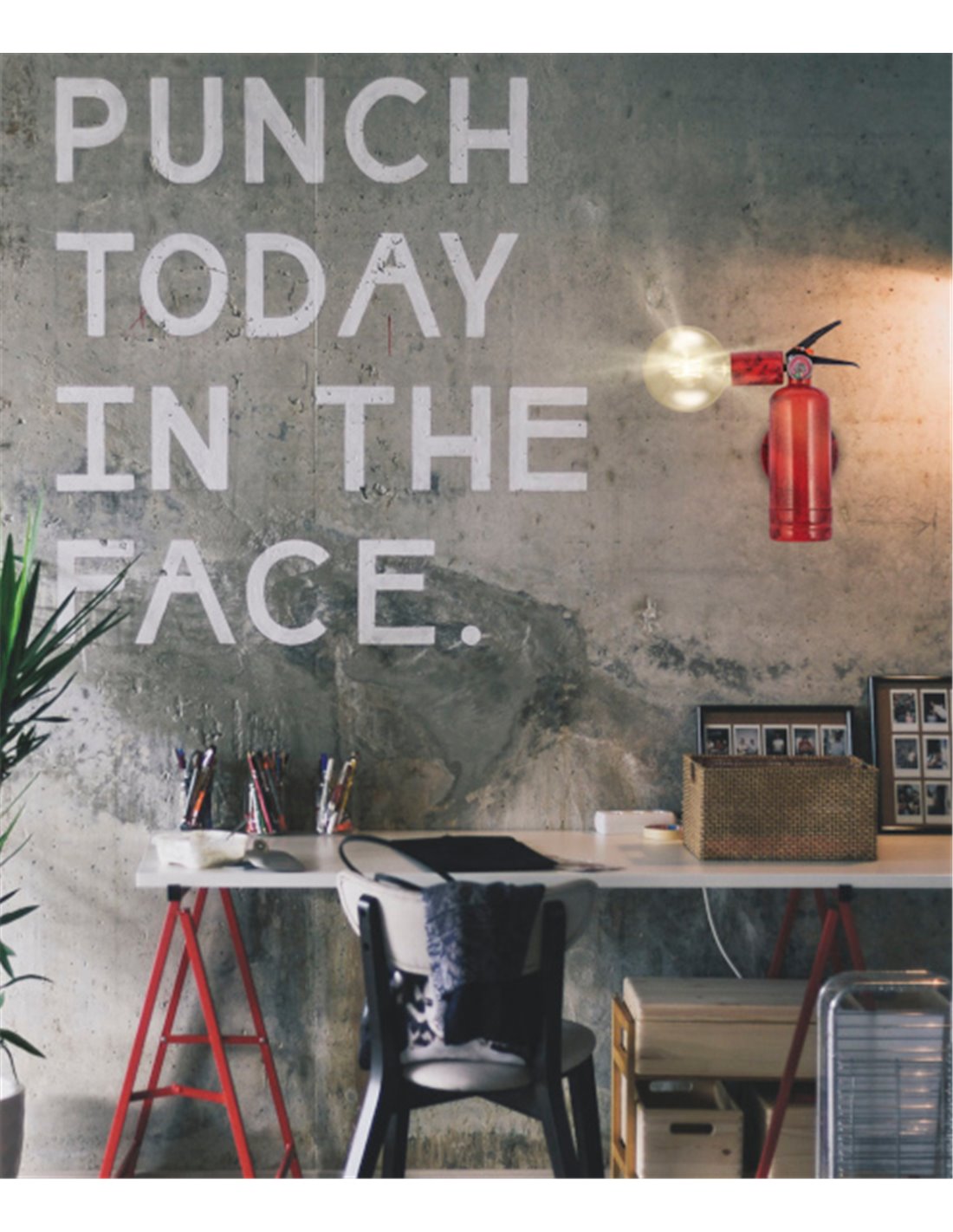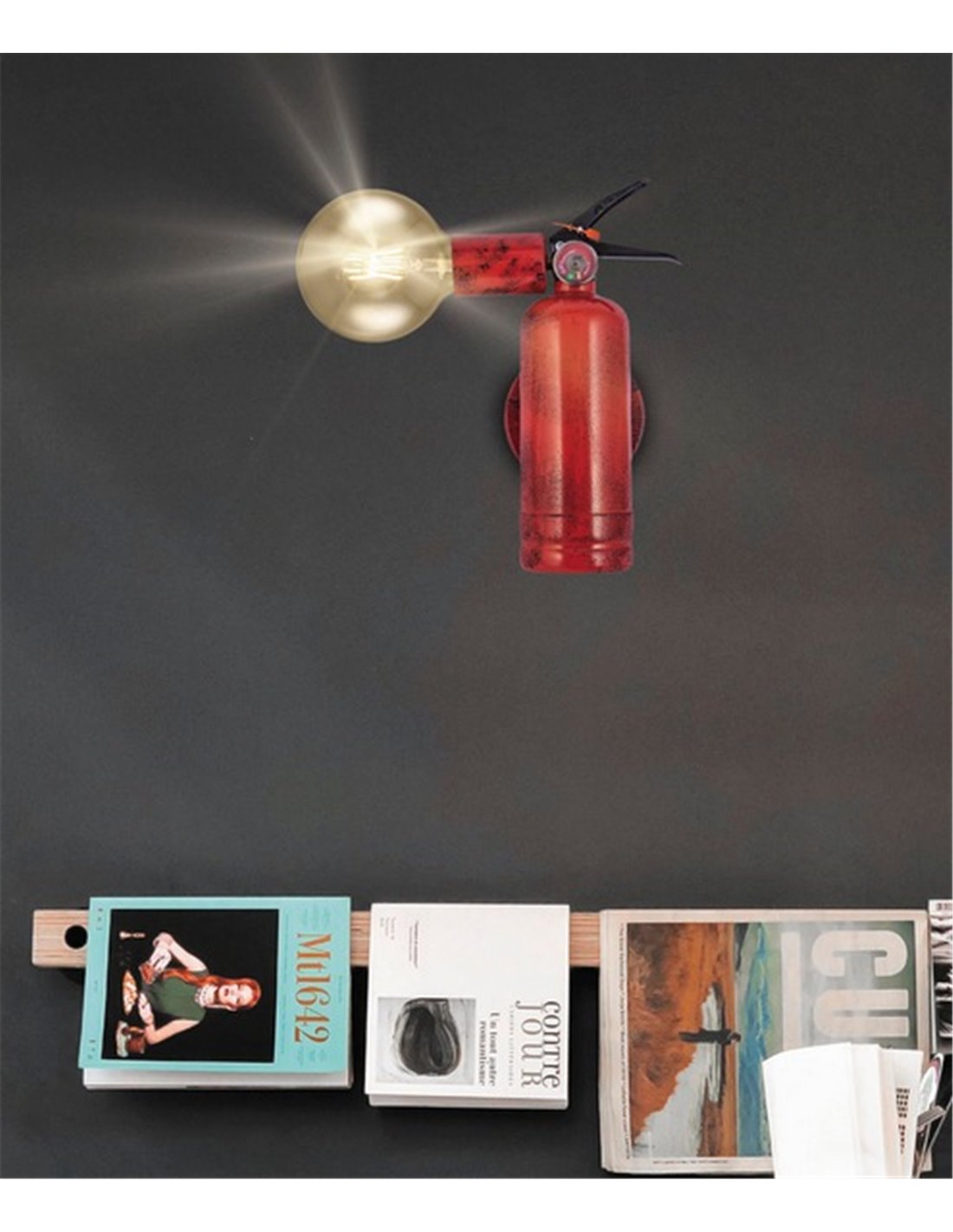 About AJP's Dylan wall light; industrial design, aged red finish, 1xE27