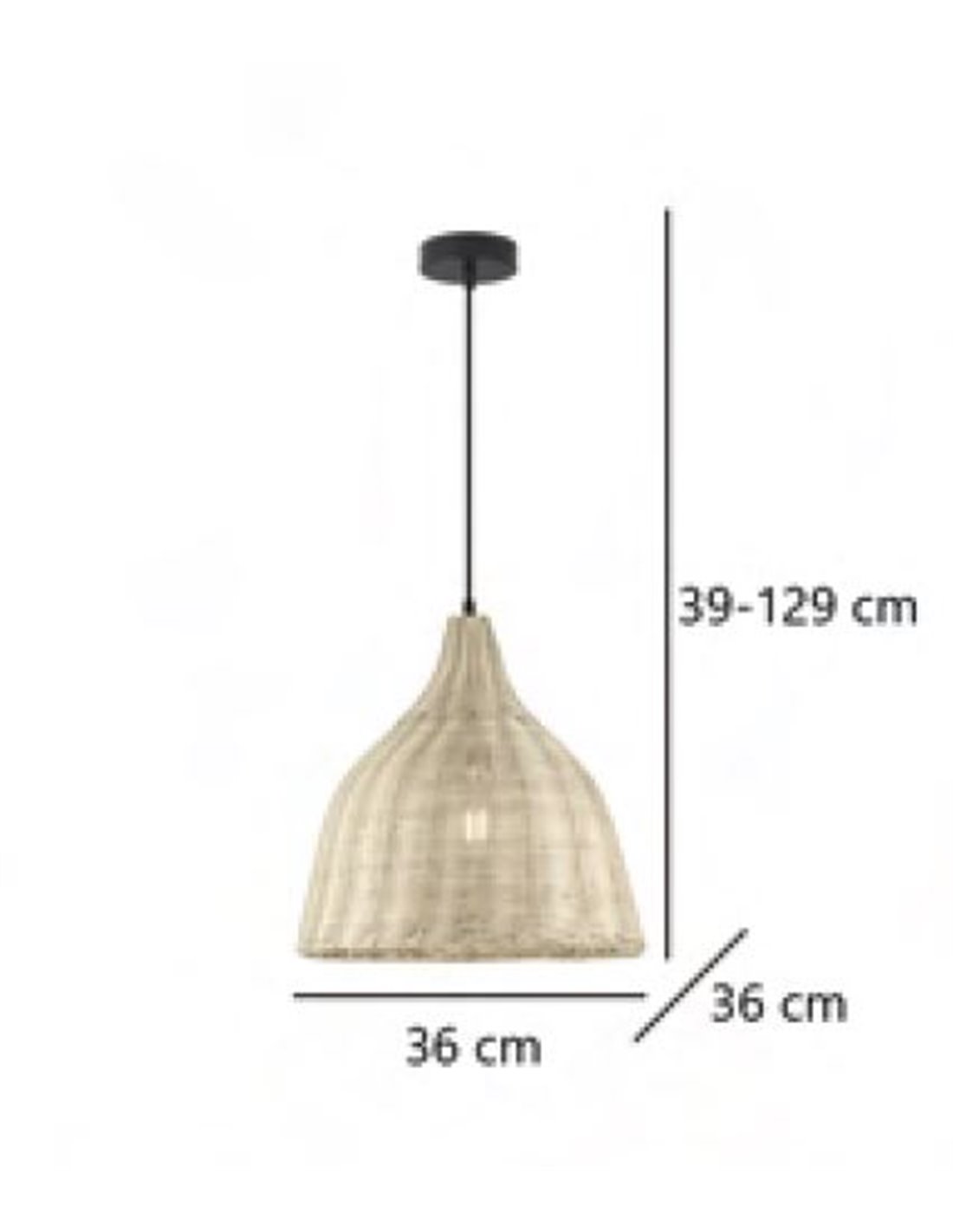The lamp has a diameter of 36 cm and an adjustable height of 39 to 129 cm, allowing you to customise the installation according to the needs of the space, making it perfect for locations such as living rooms, dining rooms or lounge areas.