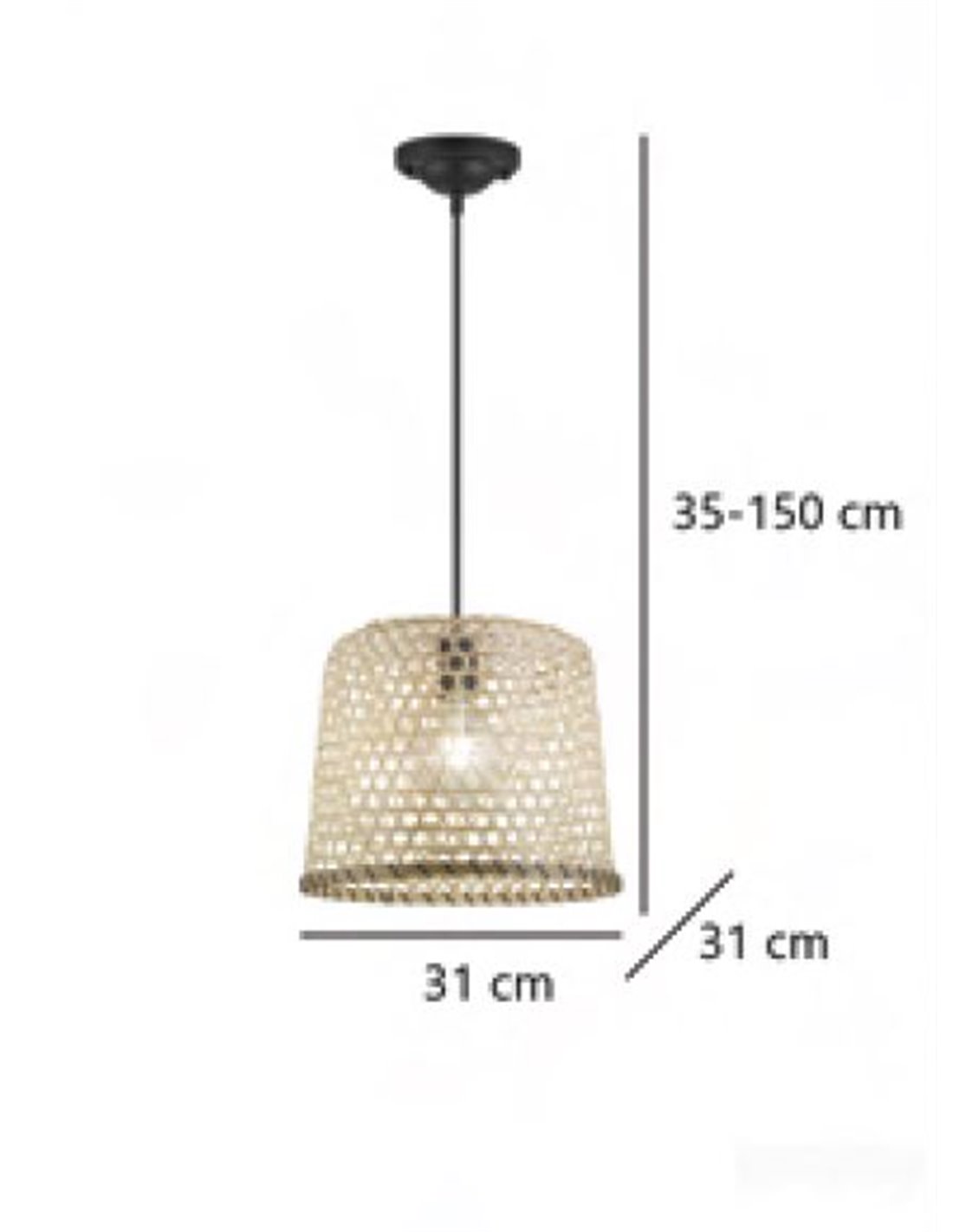 The lamp has a diameter of 31 cm and an adjustable height of 35 to 150 cm, making it perfect for hanging over dining tables or in reading areas, providing focused and cosy lighting.