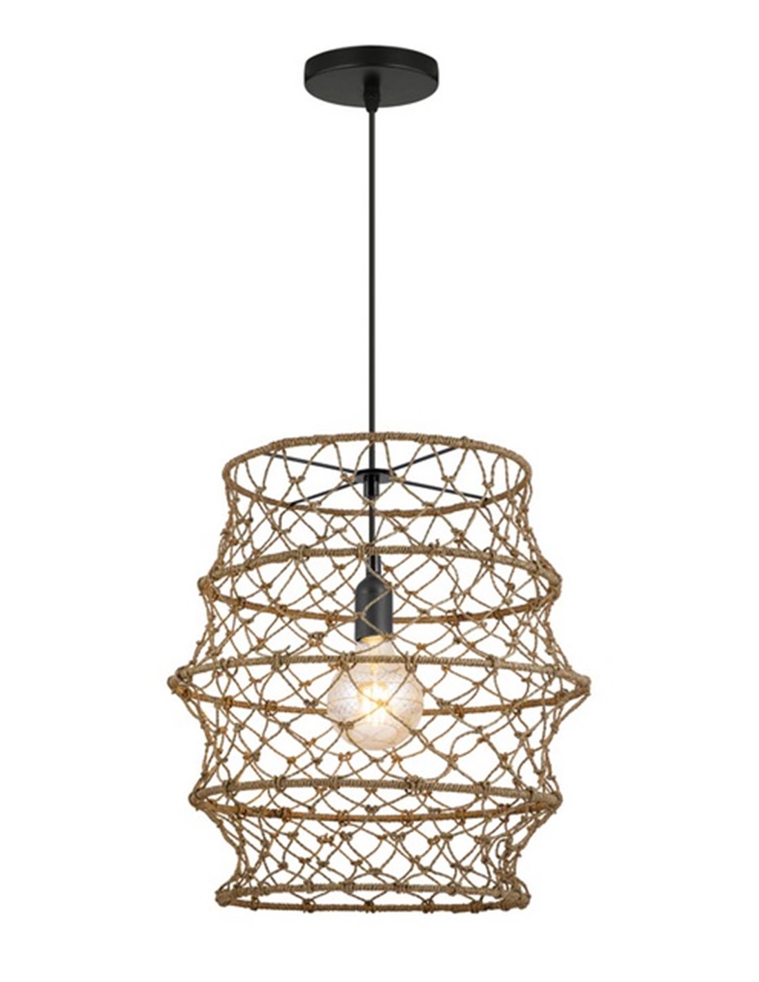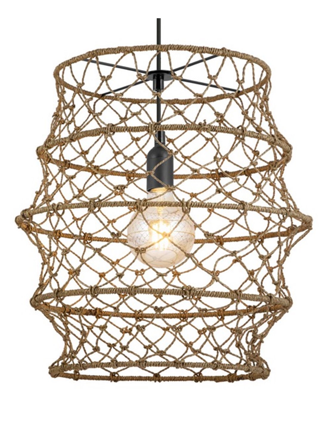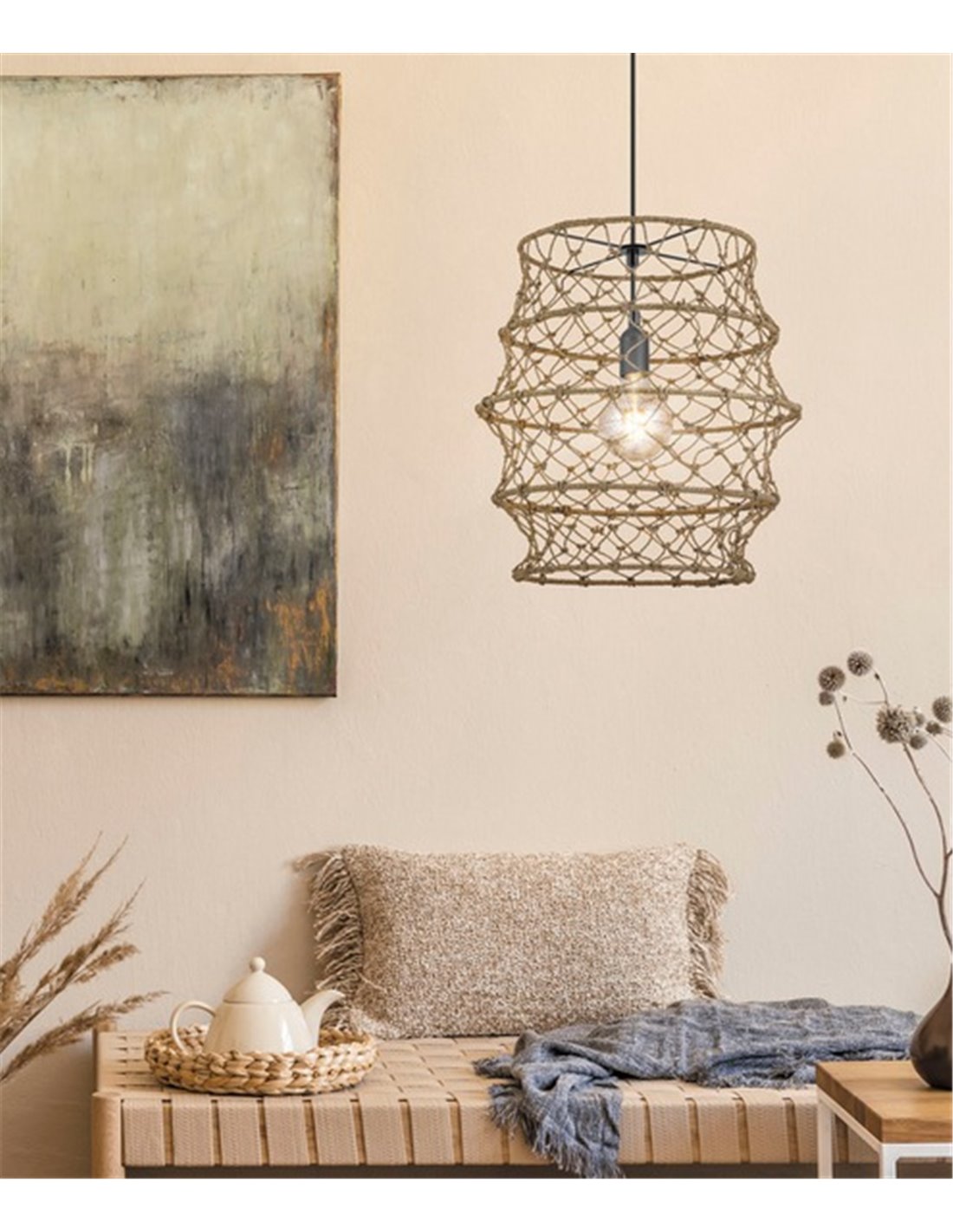 This lamp, which incorporates rope in a natural finish and metal, evokes a maritime ambience and is perfectly suited to a variety of decor styles, from rustic and boho chic to contemporary. The open structure of the shade not only protects the bulb, but also allows for an even distribution of light.