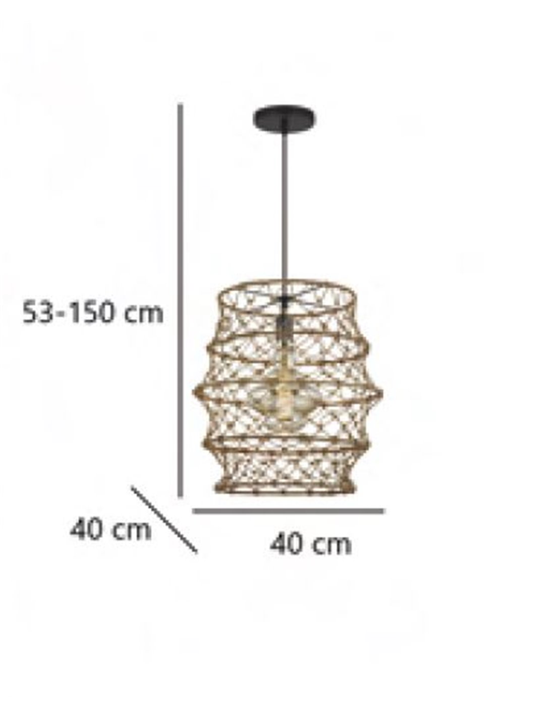 It has a diameter of 40 cm and an adjustable height between 53 and 150 cm, allowing you to customise the height according to the specific needs of the space. It is perfect for living areas, over dining tables or in entrance areas, where its presence will be both a focal point and an effective source of illumination.