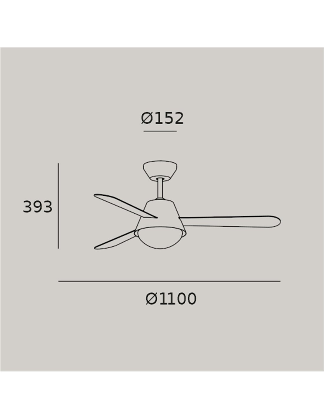 This three-blade fan has an energy-saving DC motor, with 5 possible speeds, which have the following characteristics (in power consumption and revolutions per minute):