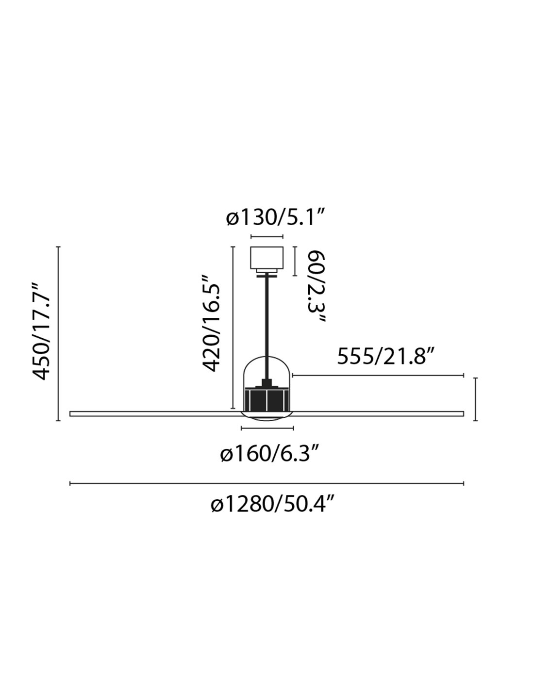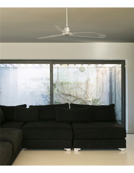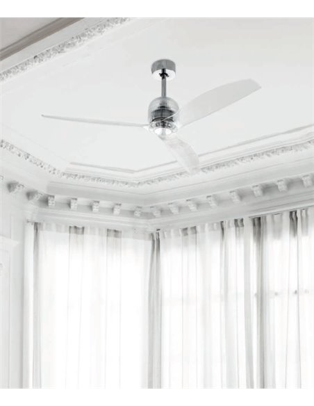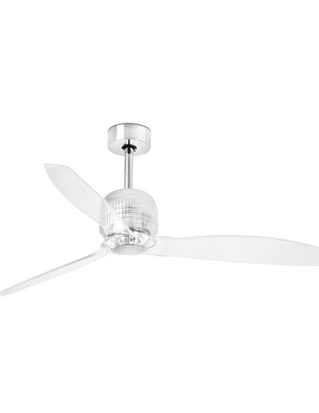 In addition, to make sure it looks perfect in your desired room, we offer you four different finishes, and also the possibility of choosing it with or without light. - Transparent - Matt black - Old gold - Copper If you choose the option with light, the fan includes a 16W 3000K 709 lm SMD LED light source.