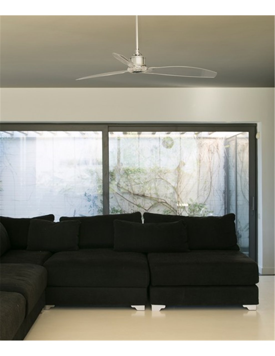 It is suitable for installation on sloping ceilings. Decofan has an air flow of 145.66m3/min and has 6 possible adjustable speeds, with the following characteristics in terms of revolutions per minute and consumption: 4-6-9-13-22-32W / 51-77-103-129-155-185 rpm.