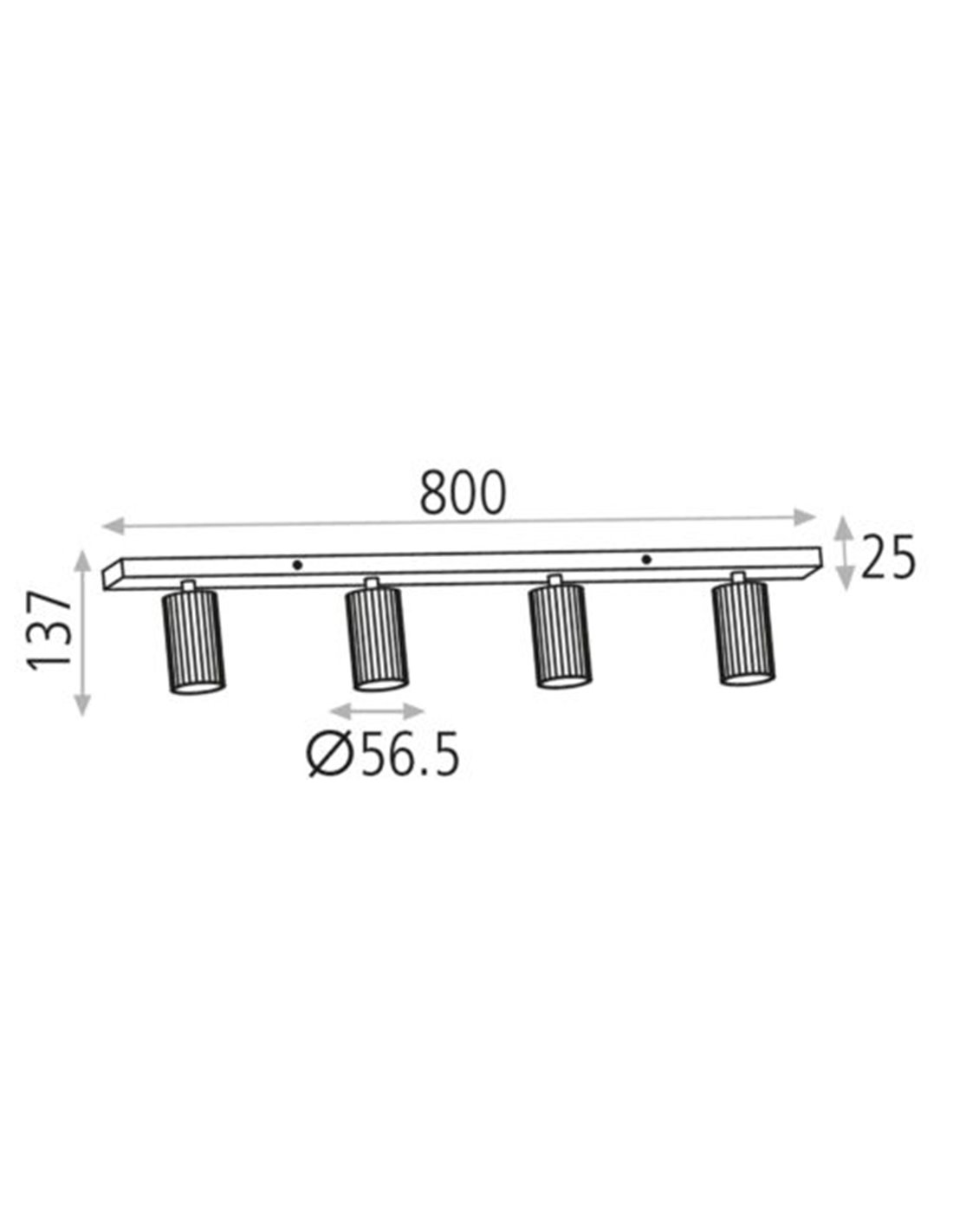 The Modrian family of ACB Iluminación represents simplicity and elegance, as well as functionality. This product is a ceiling strip with four 360º adjustable spotlights, to be able to project light easily. They can also be directed 90º vertically. Made of aluminum, this model has three finishes available: white, black and gold. This ceiling strip with four spotlights has the following measurements: 80 cm long at the base and a diameter of 5.65cm in each cylindrical spotlight. The light source is GU10 LED, which is not built-in.