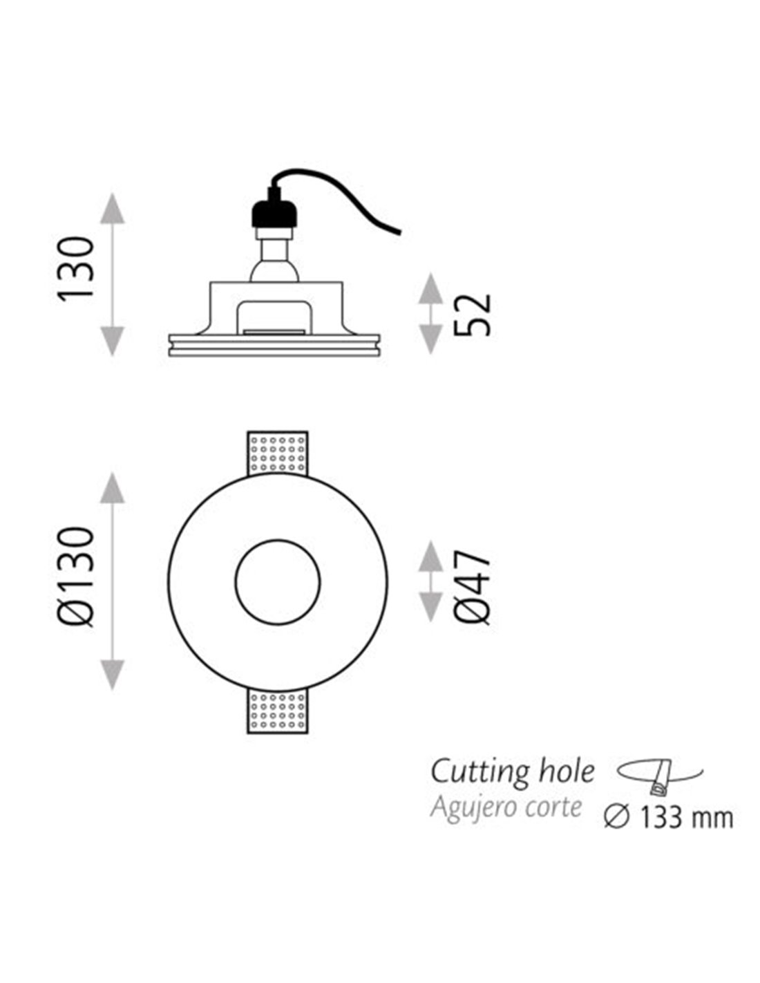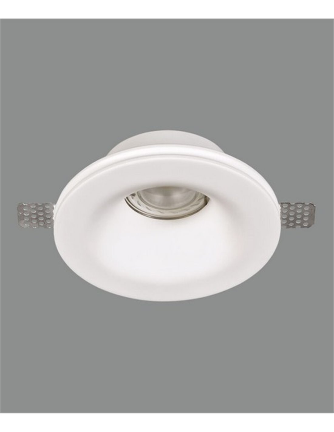 Made of plaster with a white finish, the Gamma downlight measures 13 cm in diameter and has a circular shape that makes it suitable for a variety of spaces and environments. Its simple and clean design adds brightness and modern style to any room.