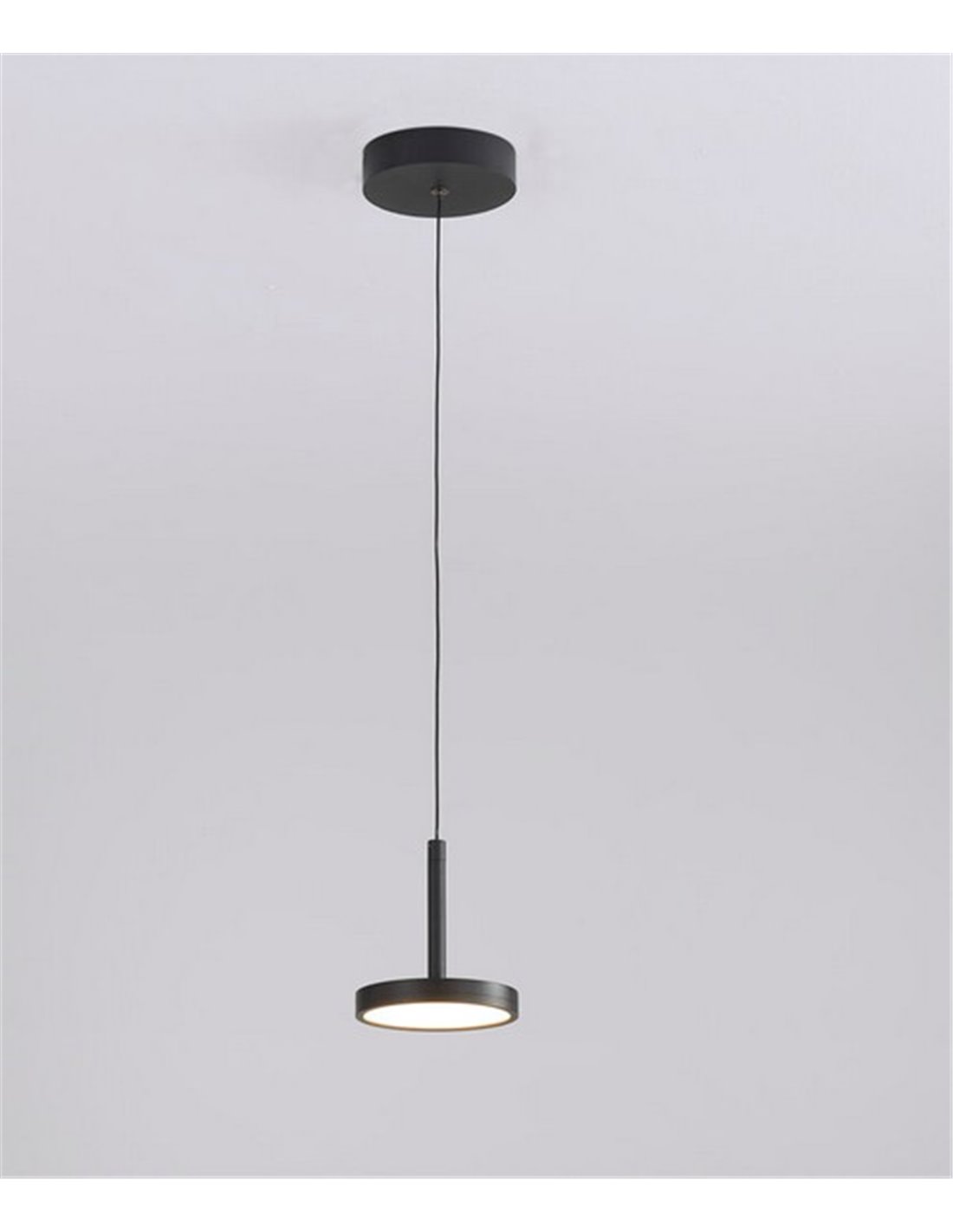 The lampshade of this pendant lamp where the opal diffuser is located is suspended on a black cable that gives it a maximum height of 250 cm. Thanks to its characteristics, it can be used in living rooms, kitchens or even as a bedside table pendant light.