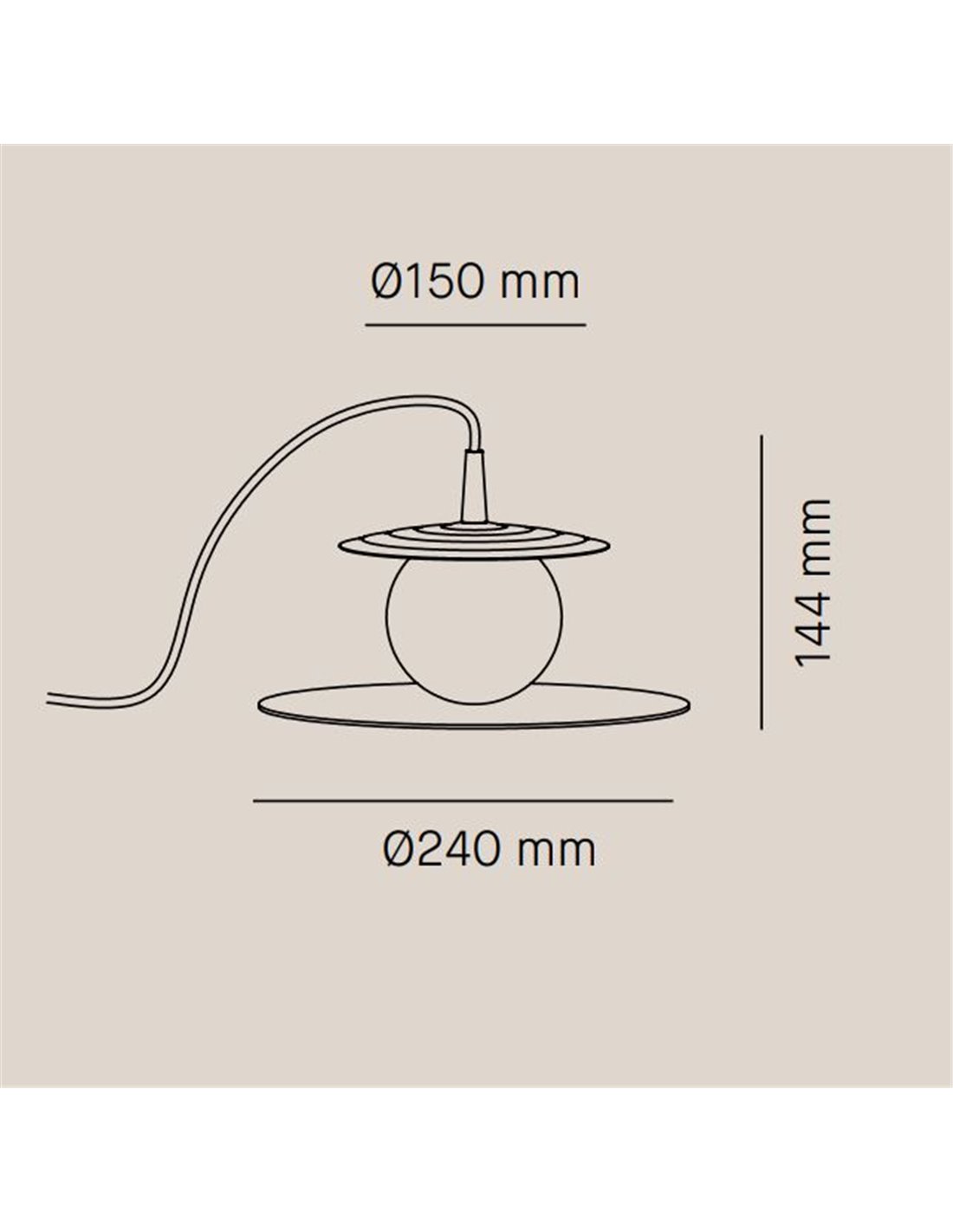 The lamp has a total diameter of 24 cm and a height of 14.4 cm. The design also includes an overhead switch on a 2-meter long cable, offering convenience and flexibility in placement and use.