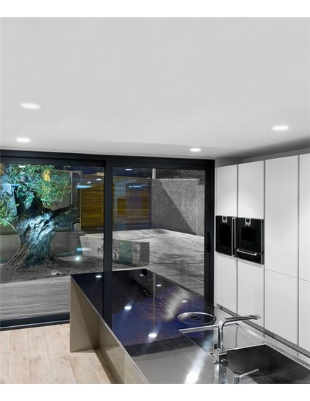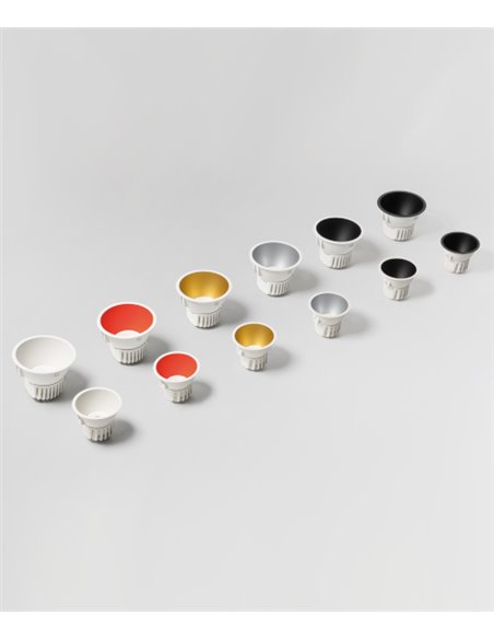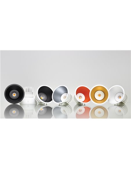 Lex Eco is a recessed downlight with LEDs in COB format and without diffuser, making it a highly differentiated luminaire. Thanks to the recessed location of its LED, Lex Eco achieves great visual comfort. Its shade is available in a matt finish in 6 finishes.
