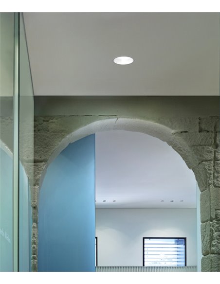 Combining high luminous flux with excellent visual comfort: that is the great virtue of Duomo. Its recessed LED and optical glass lens reduce the UGR index and its anti-glare screen reduces glare. Duomo is suitable for applications in high ceilings or projects with high light requirements. Designed for general lighting functions, its conical light distribution provides a very uniform light.
