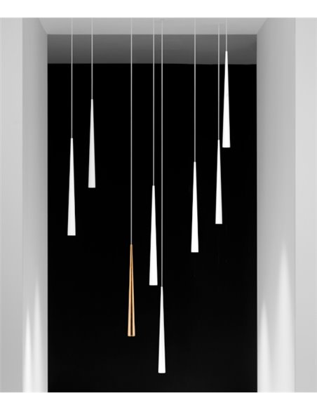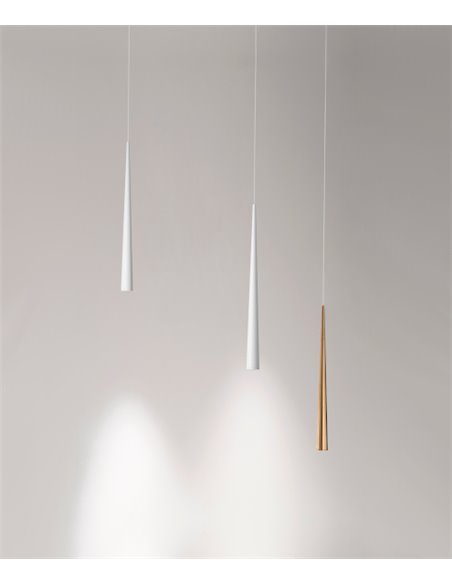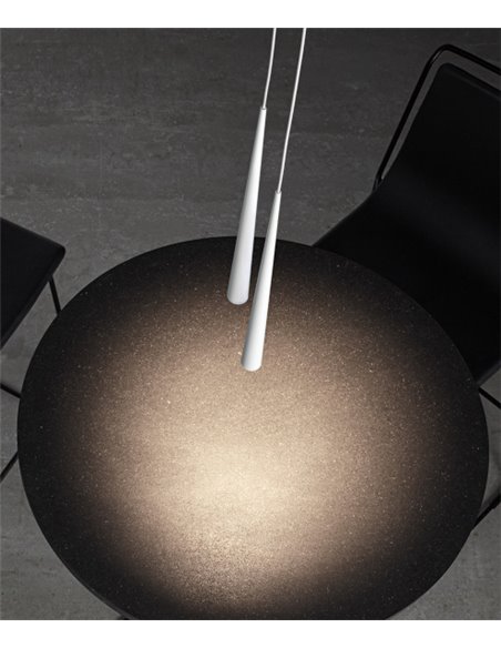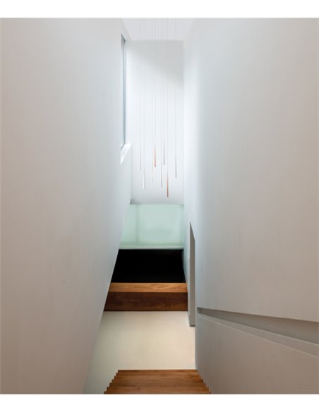 Holly is a suspension lamp for accent lighting functions. Its stylised and elegant geometry and its body in solid machined aluminium define a piece with a markedly decorative character and a high perceived quality. Its light beam, strictly defined by its micro-reflector, optimises the LED flux to achieve a high relative illuminance on the working plane - thanks to the remarkable use of the gross lumen output - and a high luminous flux.