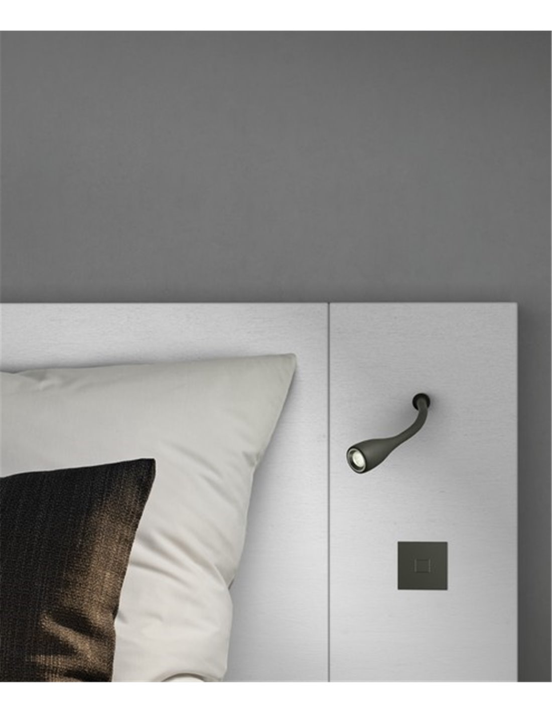 Dream is a recessed wall light designed to be used as a bedside reading light. It is easy to adjust by hand, flexible and very versatile. Whatever position it is taken to, Dream adapts to it and can keep it there. Its silicone coating and the soft lines of its geometry make this luminaire visually appealing and very pleasant to the touch. Dream offers an exceptional quality of light for reading, while requiring extraordinarily low power consumption.