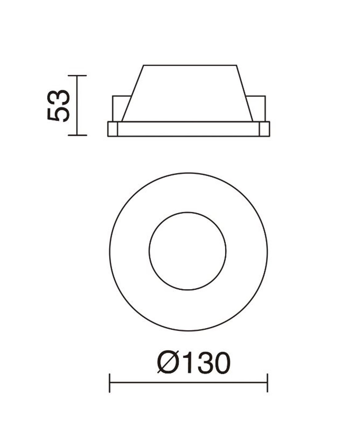 - Recessing dimensions: a hole 133 mm in diameter and 110 mm deep must be drilled for ceiling mounting.