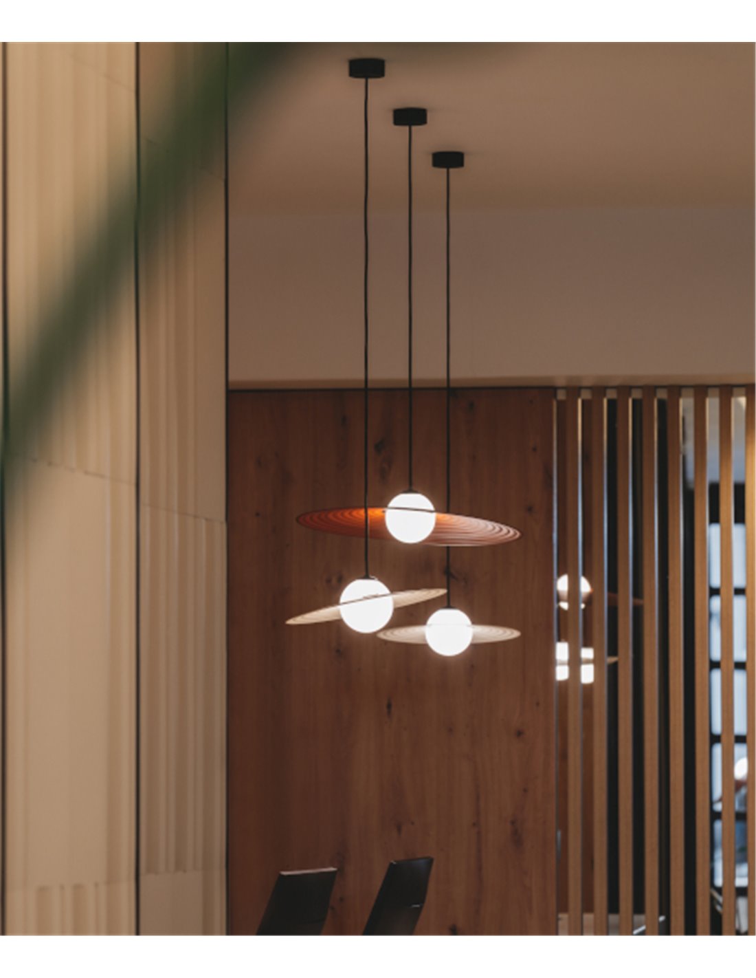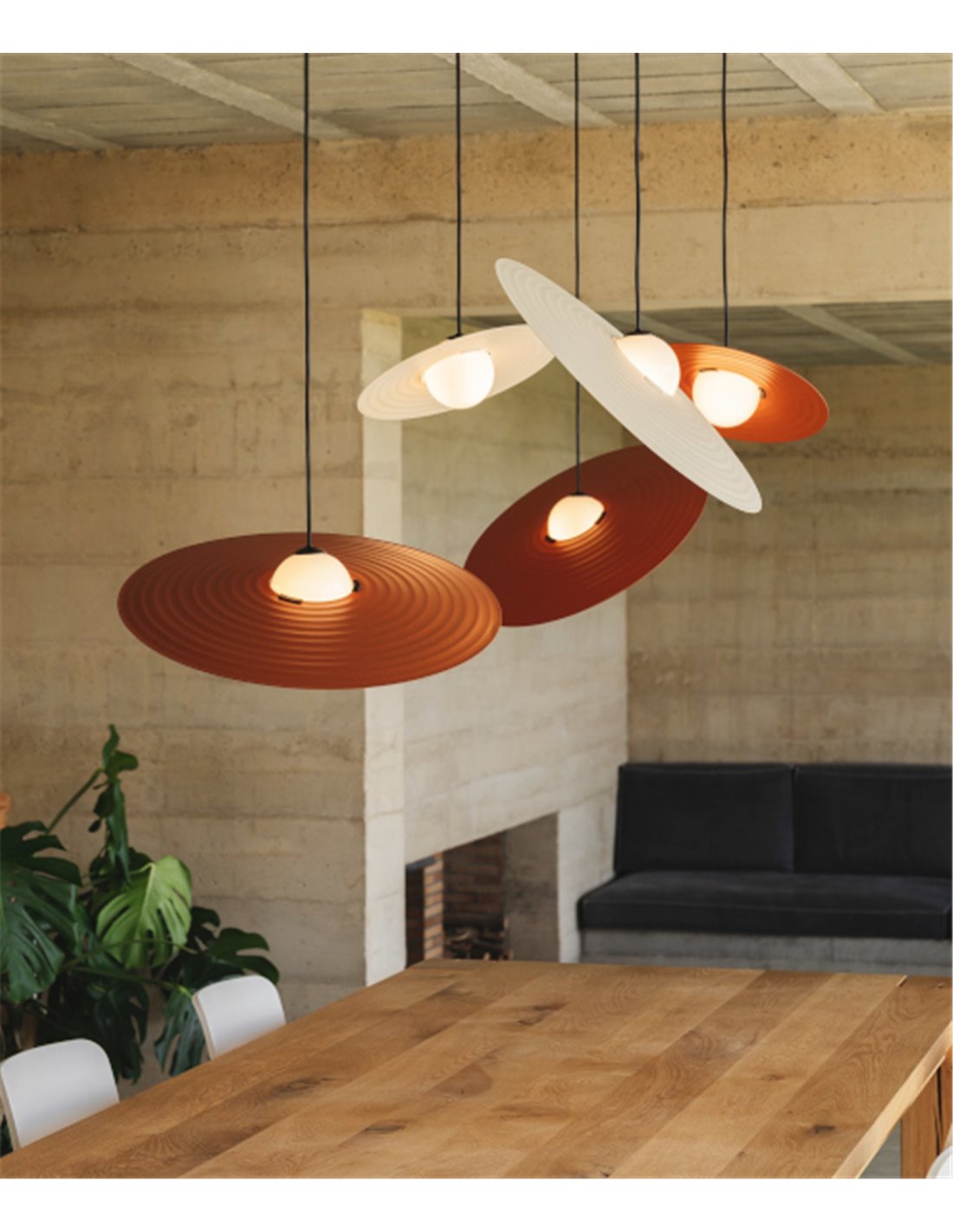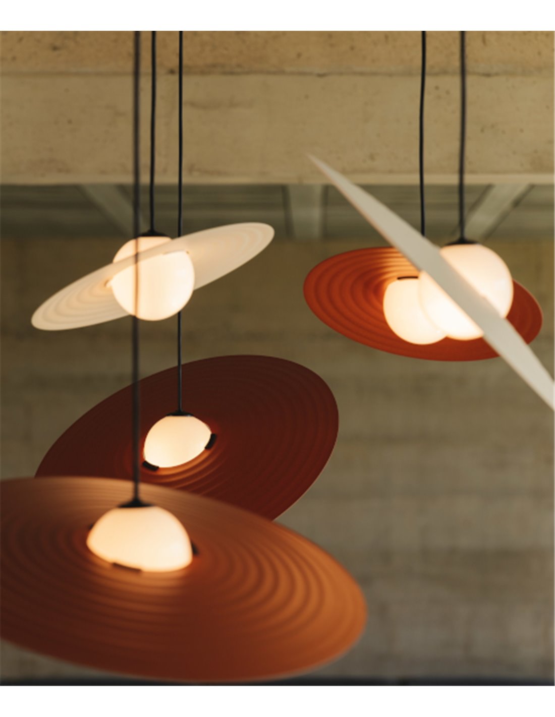 About Milan's Symphony pendant light: contemporary and decorative design, available in three colors and two sizes, orientable lampshade