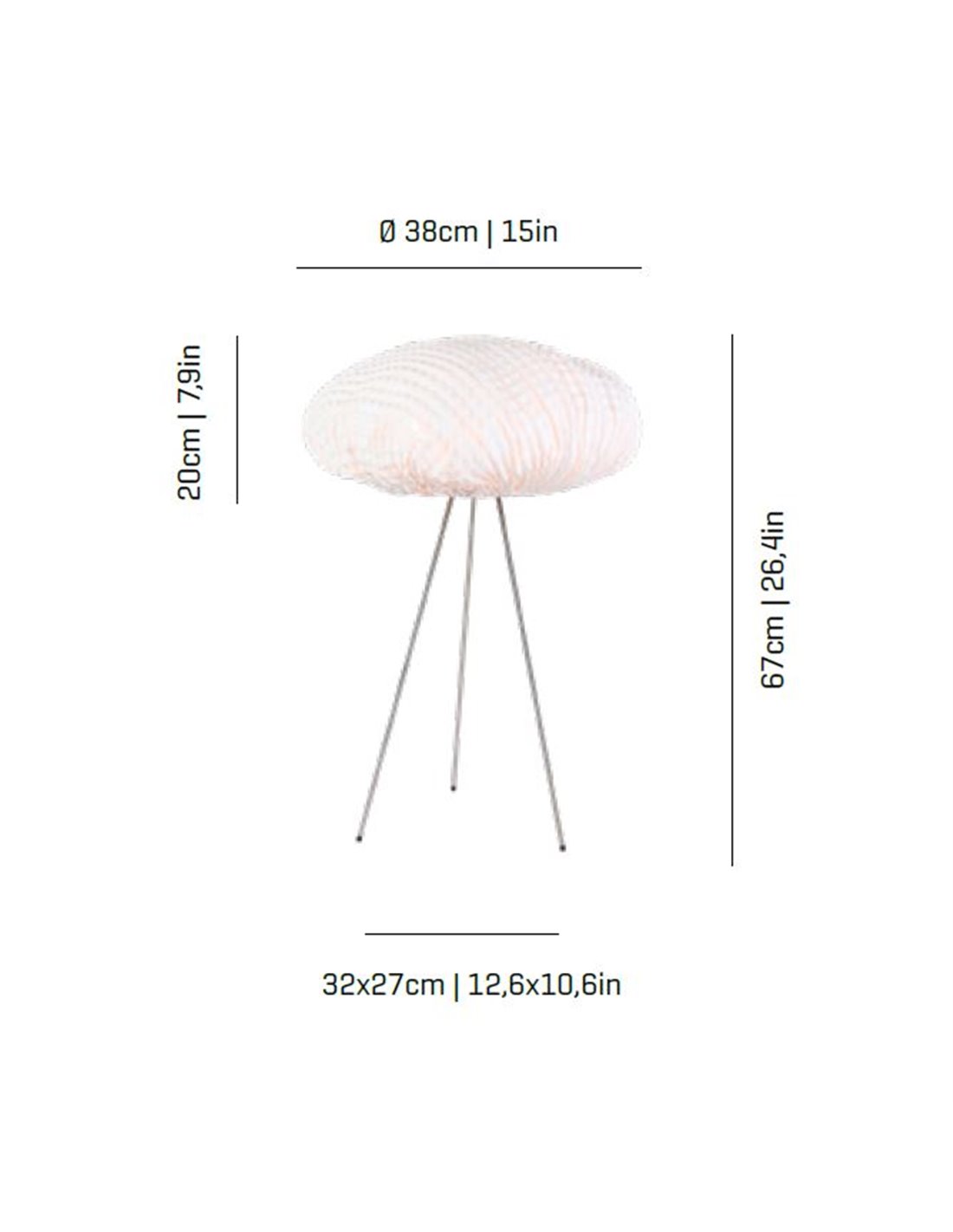La lámpara de sobremesa de diseño de la familia Tati, se oferta con su tulipa de acero inoxidable pintada en color Blanco, Beige, Gris y Topo, aunque estos colores son customizables a petición del cliente, permitiendo elegir el color que mejor encaje con el comedor o salón en el que se desee colocar. El soporte del modelo es de acero inoxidable. Para que encaje mejor en las mesas de comedores, estudios o salones permite la elección de cable transparente o negro, de 200cm de largo. Esta lámpara de mesa No incluye la bombilla, se recomienda el uso de bombillas E14 LED Vintage o Standard de máximo 2x7W. Las medidas de este modelo son de 67cm de alto, en el que la tulipa tiene una altura de 20cm, la base de esta es de 32x27cm y el diámetro de la tulipa es de 38cm.