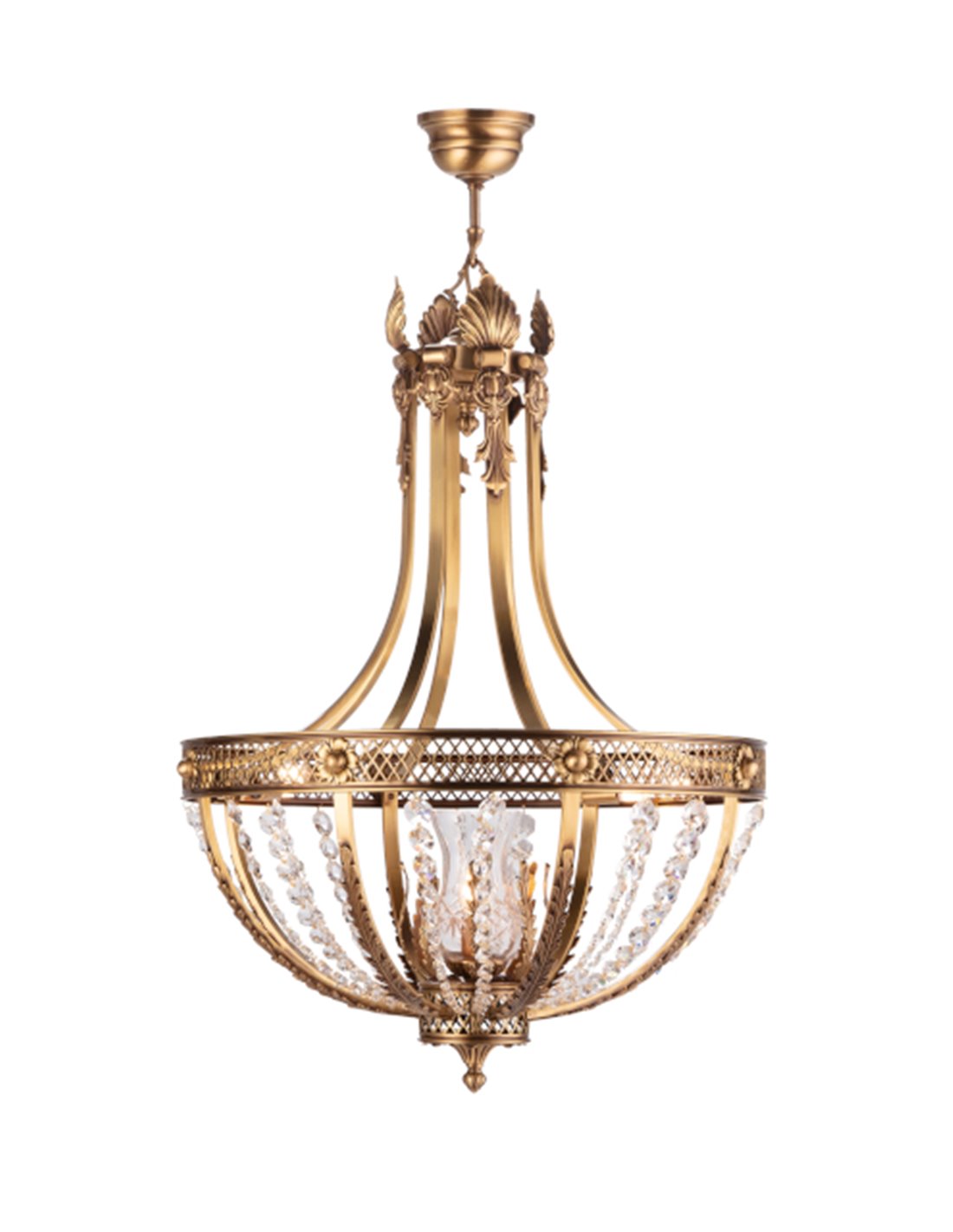 Its classic design makes it perfect for environments that seek a traditional style, but with a touch of luxury thanks to its high quality materials and gold finish. It is ideal for luxury hotels, mansions, event halls and anywhere that requires impressive and decorative lighting.