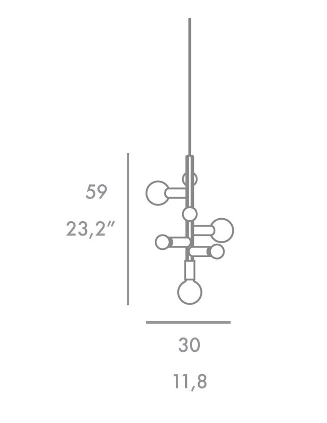 About Party pendant light by FOC; vertical format with 7 LED bulbs, minimalist ball lamp