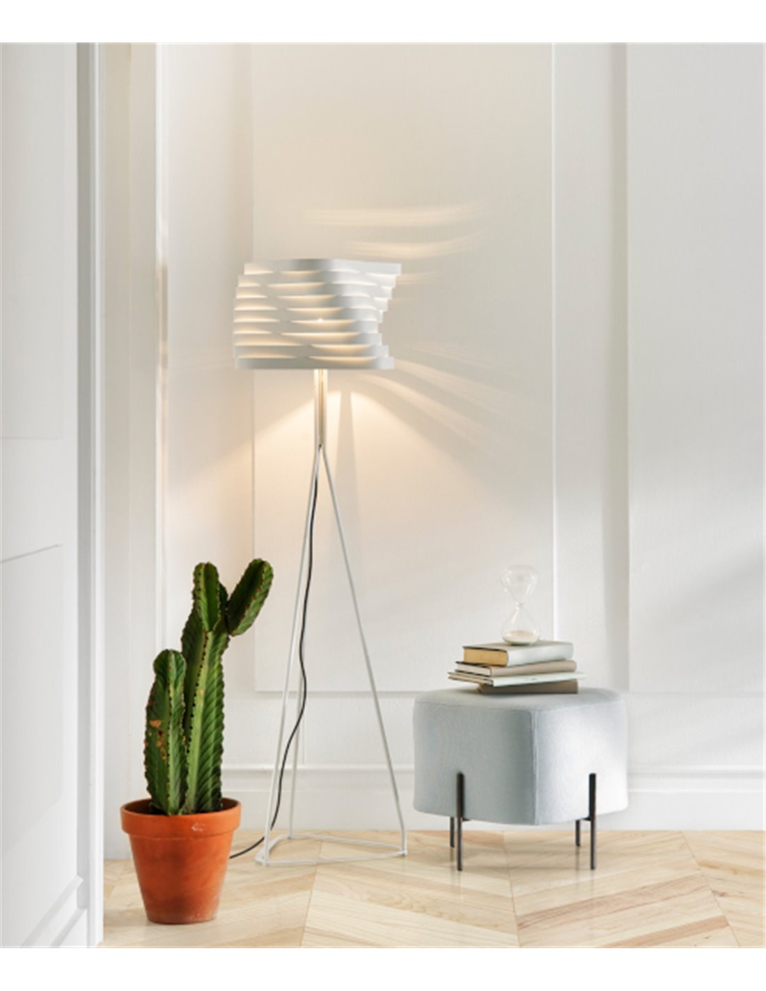 Thanks to its simple stylised lines, it is ideal for providing optimal lighting and decorating open-plan and minimalist rooms, such as living rooms and bedrooms.