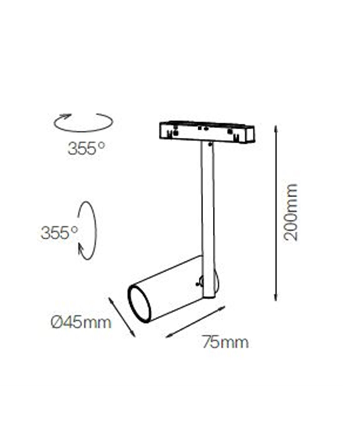 - 48V Dot track spotlight - Beneito & Faure - LED lamp 2700K/3000K, Adjustable head 355º, Finishes: white/black