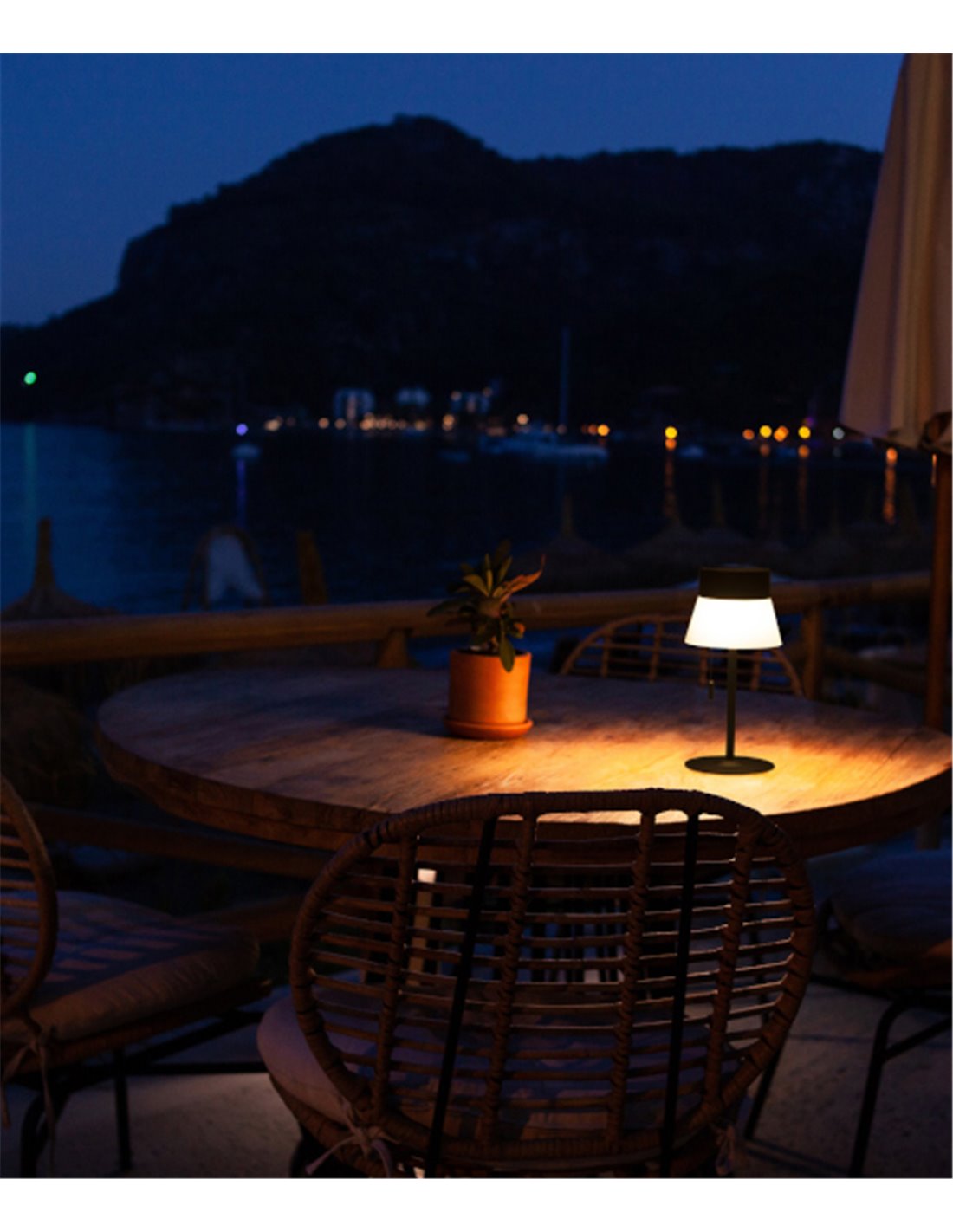 It is well suited for garden tables, terraces, patios or any outdoor space where portable and decorative lighting is needed.