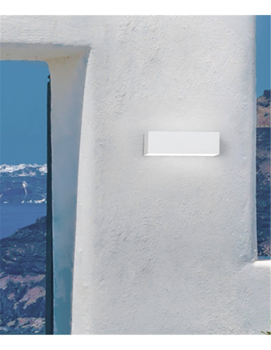 The Ara outdoor wall light has a rectangular design, measuring 23 cm in length and 9 cm in height, made of durable materials such as polycarbonate and ABS, and is available in two stylish colours: anthracite (urban grey) and white.