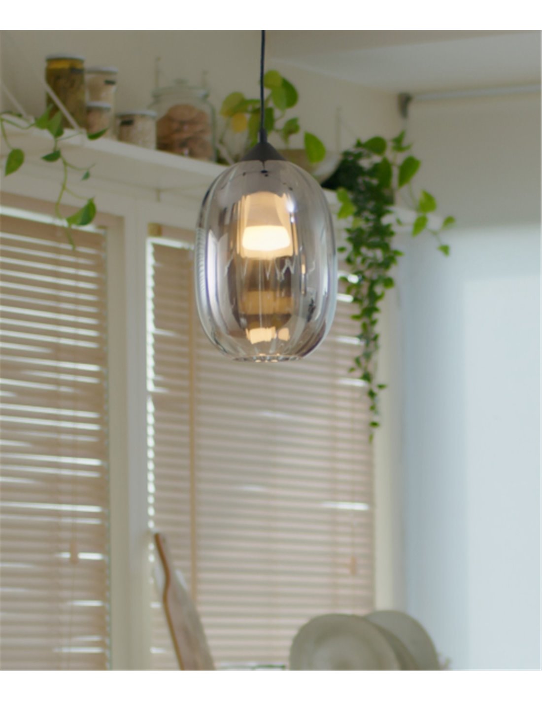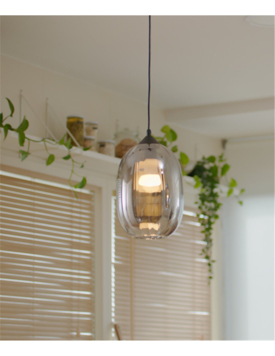 - Kea pendant light - FORLIGHT - Black glass lamp, Adjustable height, Diameter: 20 cm