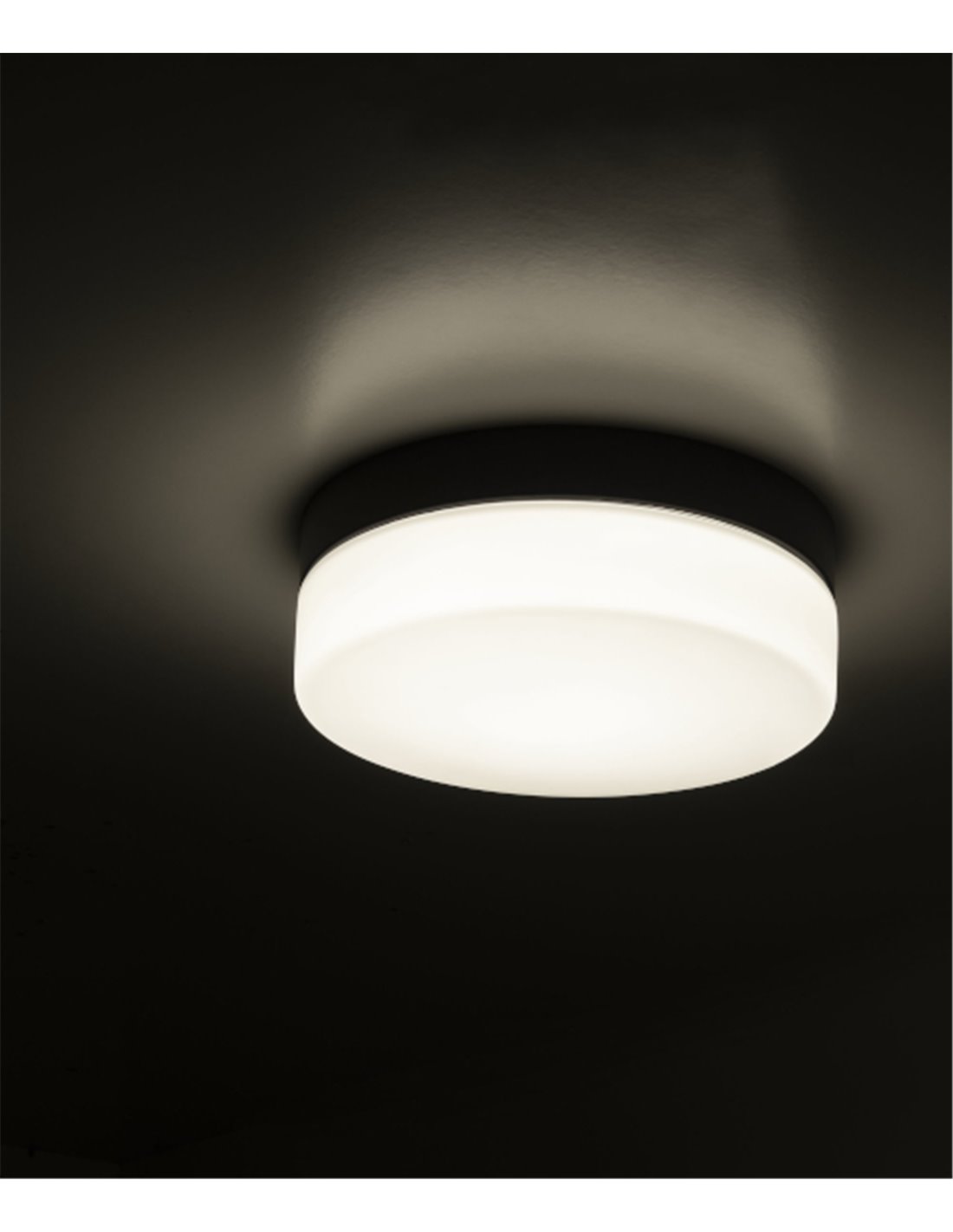 The Giro ceiling light is a modern round fixture made of steel and glass, intended to illuminate indoor spaces. Thanks to its IP44 protection rating, it can withstand humidity and splash water, making it suitable for use in bathrooms or kitchens.