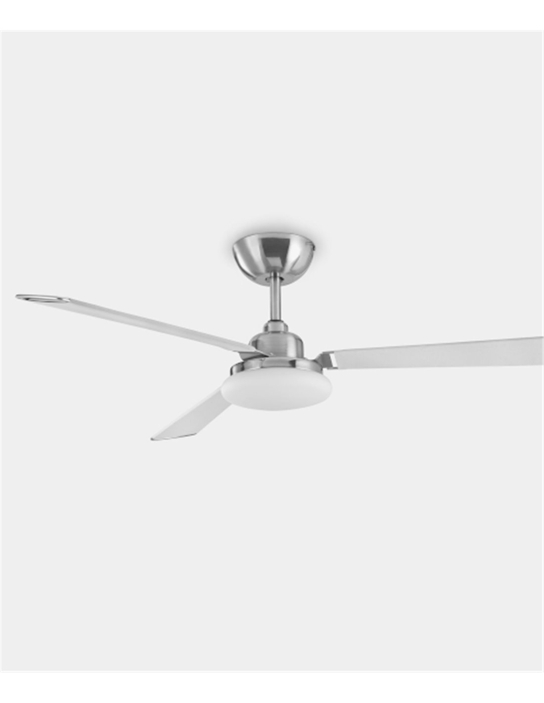 Calima is a ceiling fan that stands out for its industrial design and satin nickel finish. With three blades made of textile material, a steel structure and a glass diffuser, it combines modernity and functionality.
