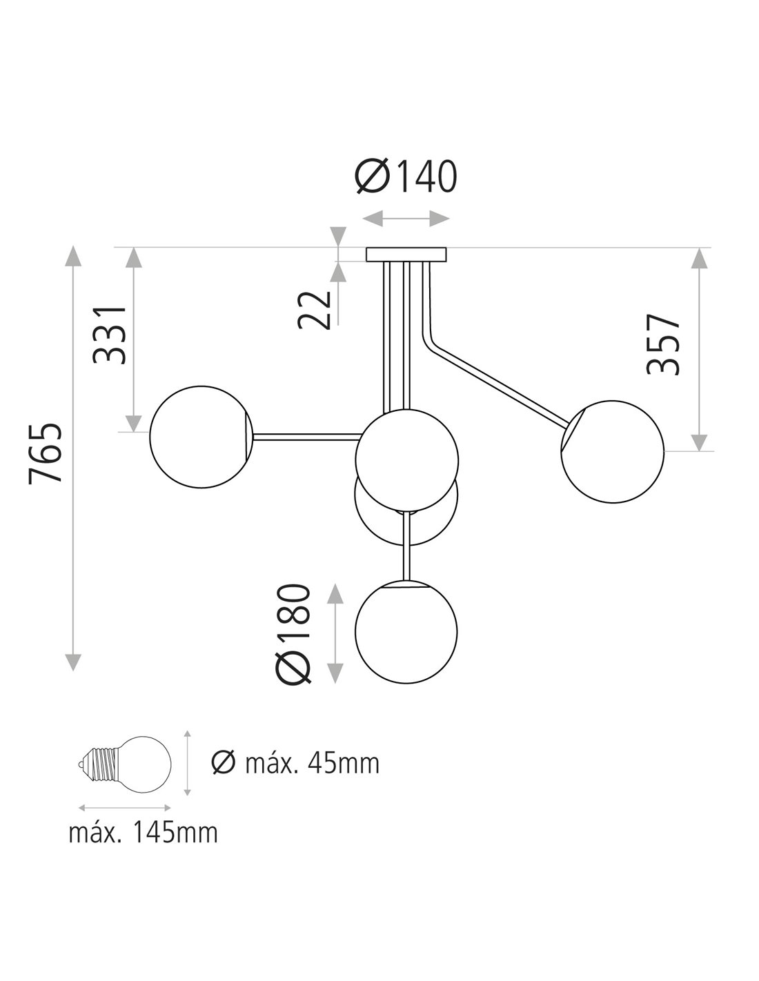 - Parma pendant light - ACB - Ball lamp with 5 lights, Old gold metal