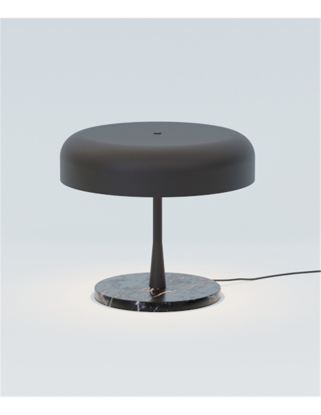 About Robin's Rea table lamp; black marble lamp, aluminium dome lampshade, 1xE27
