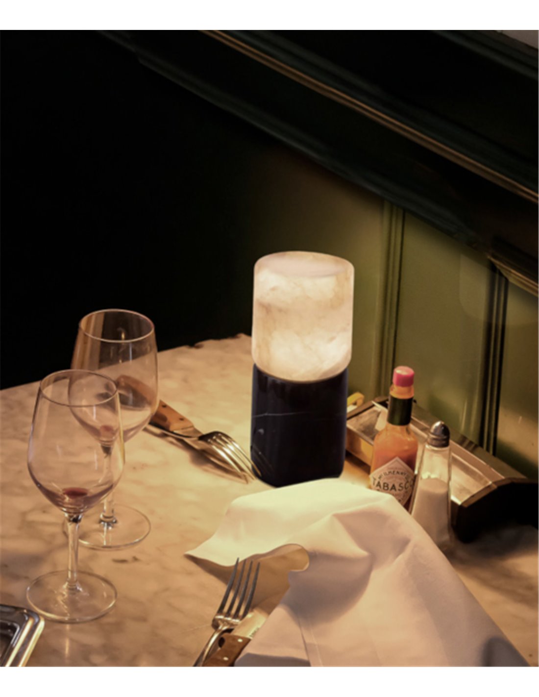 The Rock table lamp, crafted with high-quality materials, features a luxurious black marble base and a beautiful alabaster diffuser. Its unique design and elegant finishes make it an exceptional choice for creating a focal point in any space, whether on a reception desk, a dresser, a shelf, or a bedside table. The combination of noble materials adds sophistication and style to any decor.