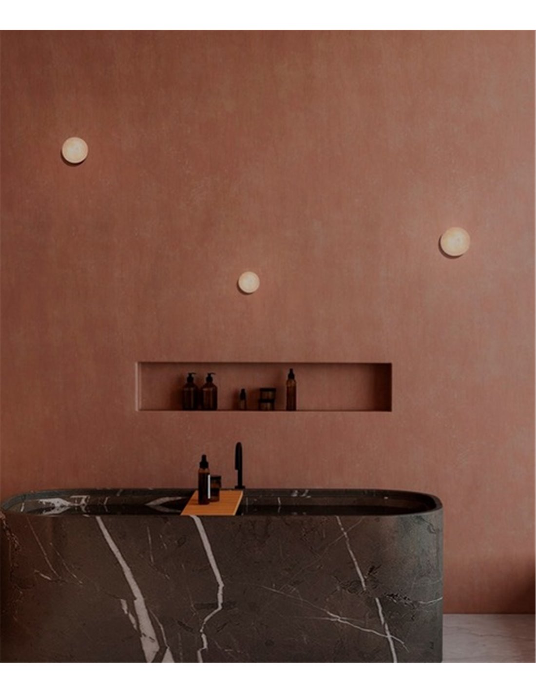 About Robin Rock wall light; minimalist design of alabaster and metal, LED 3000K 350 lm, diameter: 9 cm