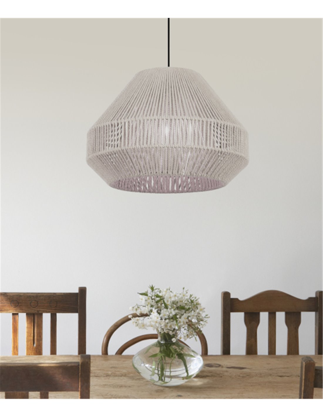La colección Acapulco es ideal para crear un ambiente acogedor y acogedor. Esta versión de suspensión incluye floron en negro y pantallas de cuerda de poliamida o algodón. Esto incluye 80% algodón reciclado.
