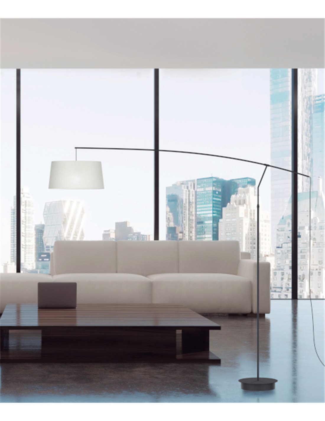 Loas lamparas Arco, con sus brazos articulados que se extienden desplazando los puntos de luz, se adaptan a cualquier espacio. Este disegno mide 160-190 cm y el l a pantalla tiene diametros de 22cm x 45cm