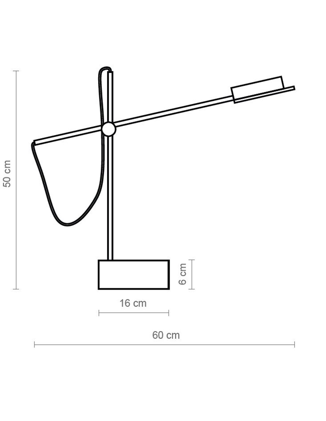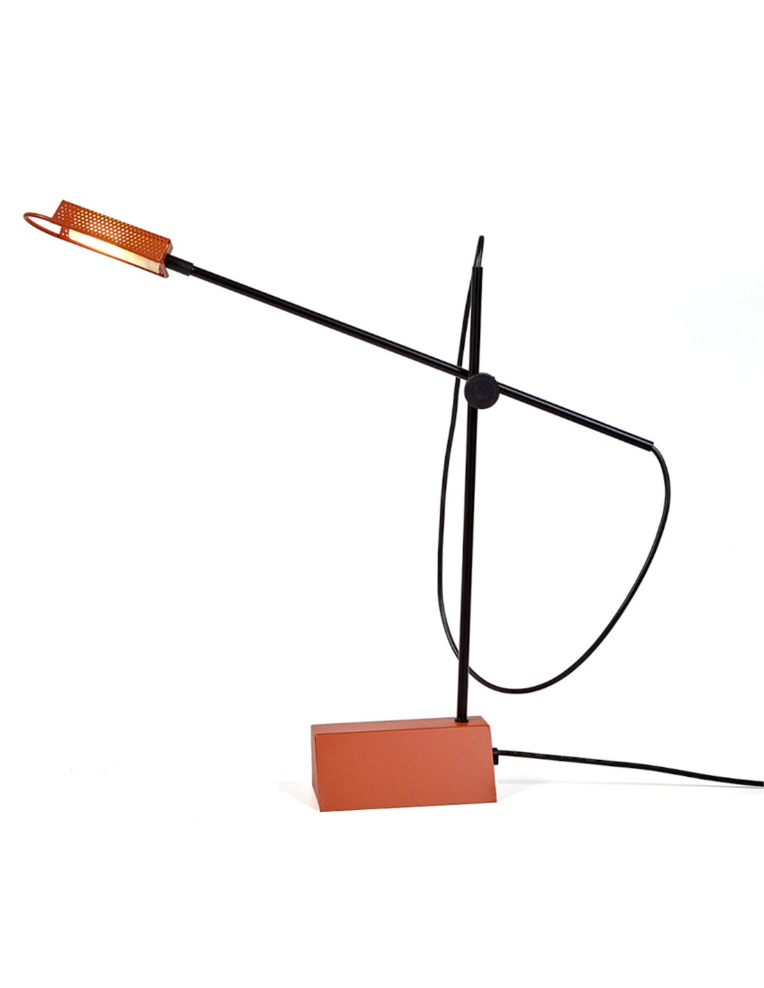 Diseñada por Joan Cambra, fundador de la empresa en la década de 1960 y diseñador autodidacta, logró crear su propio estilo en el mundo de la iluminación decorativa gracias a su carácter carismático e inquieto. La lámpara de mesa H2, fabricada en metal lacado negro combinado con otros colores, fue un diseño icónico de la década de 1980 y ha sido reeditada ahora con nuevas opciones de acabados. Bombilla G9 LED de 8W no incluida. La longitud de la base es de 60 cm y la altura de la base es de 6 cm.