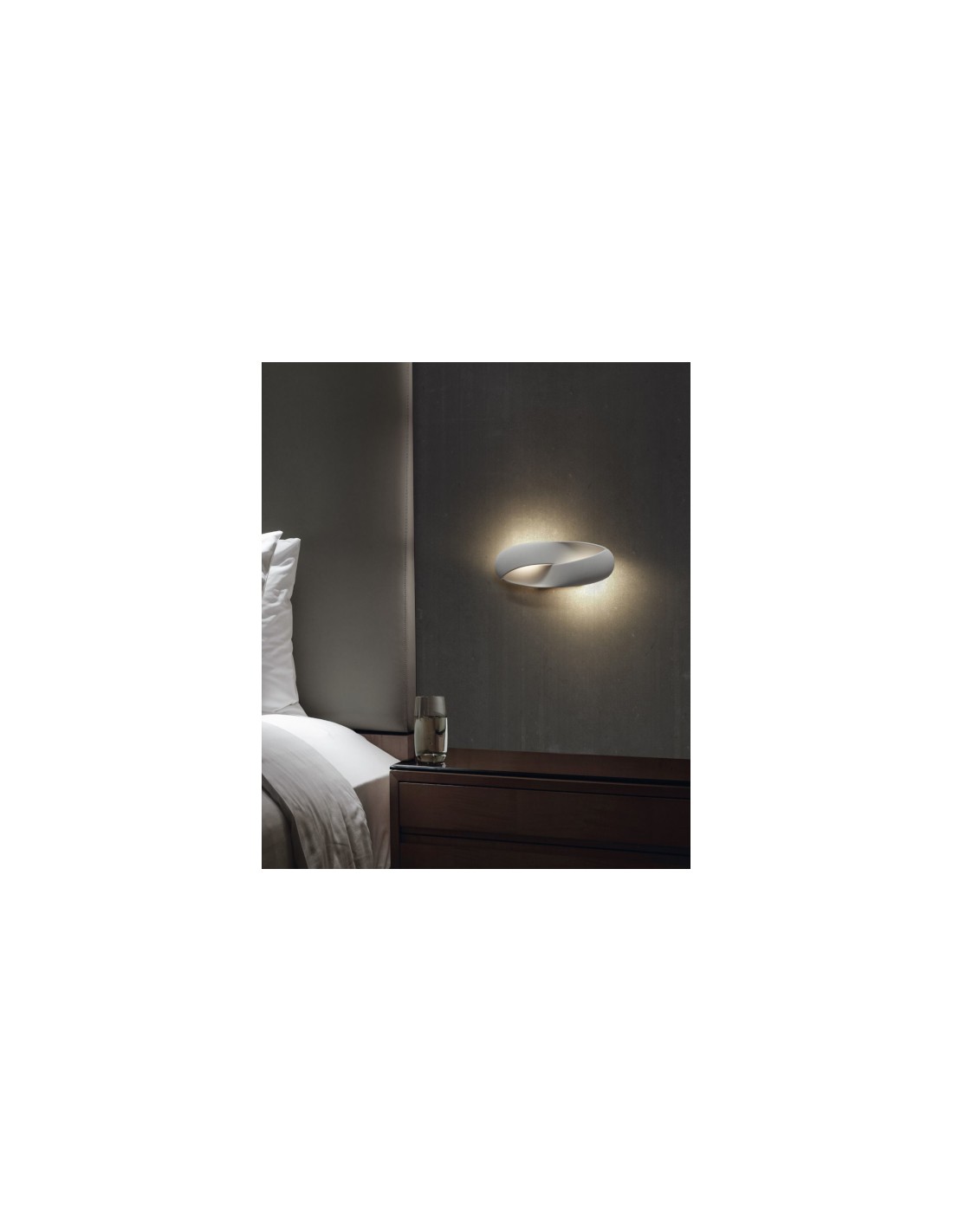 RIBBON luminaire is made of aluminum that stands out for its strength and its wrap-around original design. This fantastic wall fitting has been developed in white to provide an aesthetic sense as well as energy efficiency in indoor environments. RIBBON is doted with a double emission application, so it has a direct and indirect light.