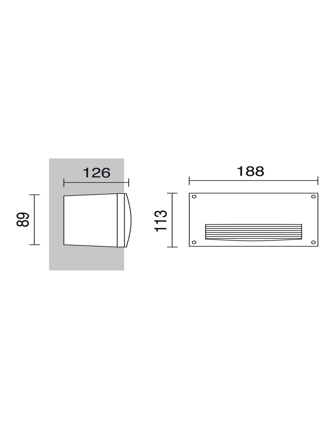Recessed wall light from the ‘Devon’ product set. It has a resin frame and a diffuser made of opal methacrylate. This outdoor luminaire has a high degree of resistance to both water and harmful mechanical impacts, and it doesn’t require grounding devices and the voltage parts are double insulated. Its voltage is 110-240V alternating current, and it emits light asymmetrically. Its dimensions are 11.8x12.6cm and its height is 11.3cm, with a weight of 0.69kg. The flush-mounted box is included but it requires the light source G53 T2 LED 3W-4W-6W, which is not included.