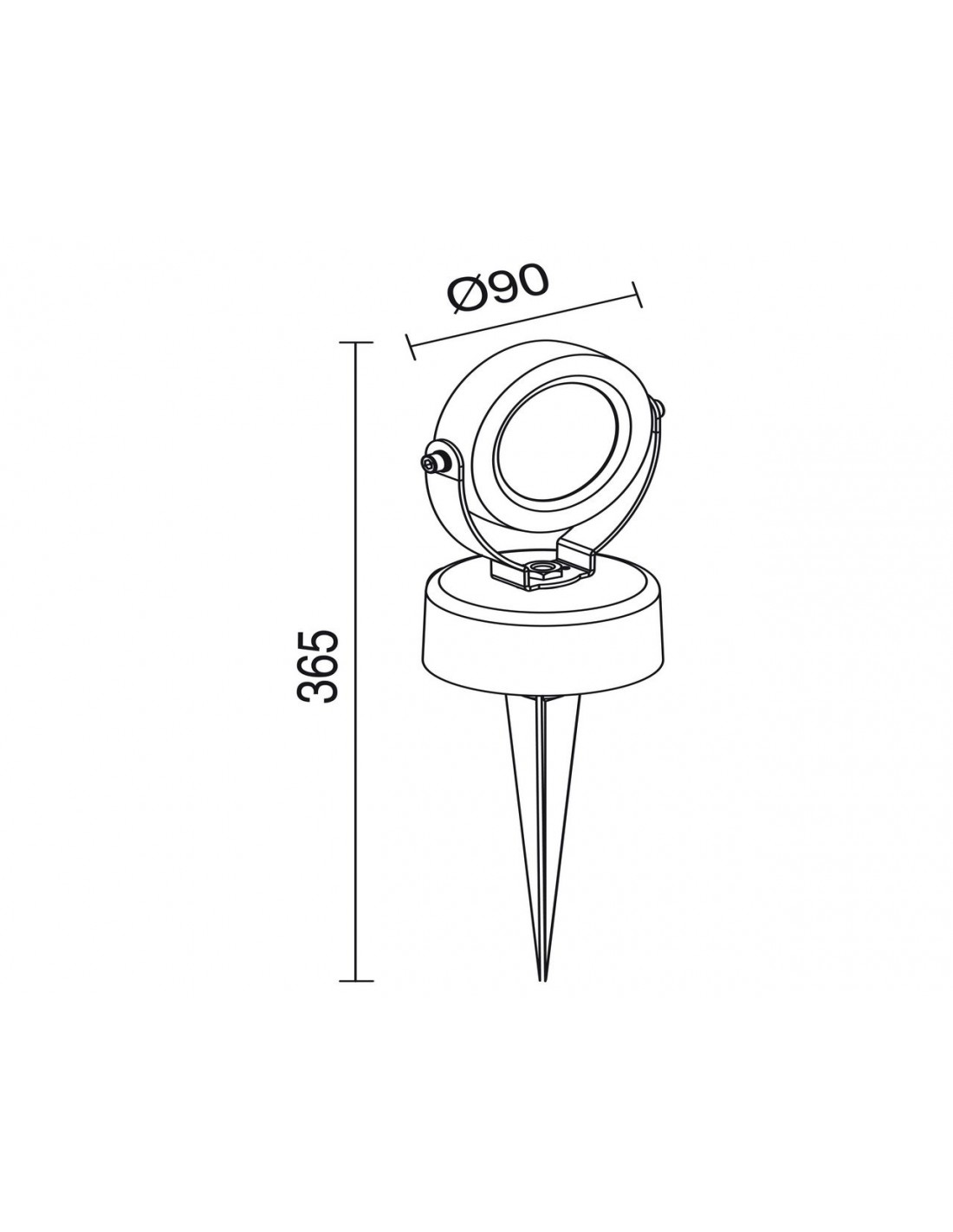 A very practical outdoor lamp that allows you to illuminate any area of the garden as it is easy to change its location and also alter the orientation of the head (up to 120º). Its angle of light emission is 90º, and it is 36.5cm high and 90cm in diameter. This small projector is made of anthracite-finished aluminum and uses the light source LED 7W 519lm 3000K, that is included with the purchase of the lamp.