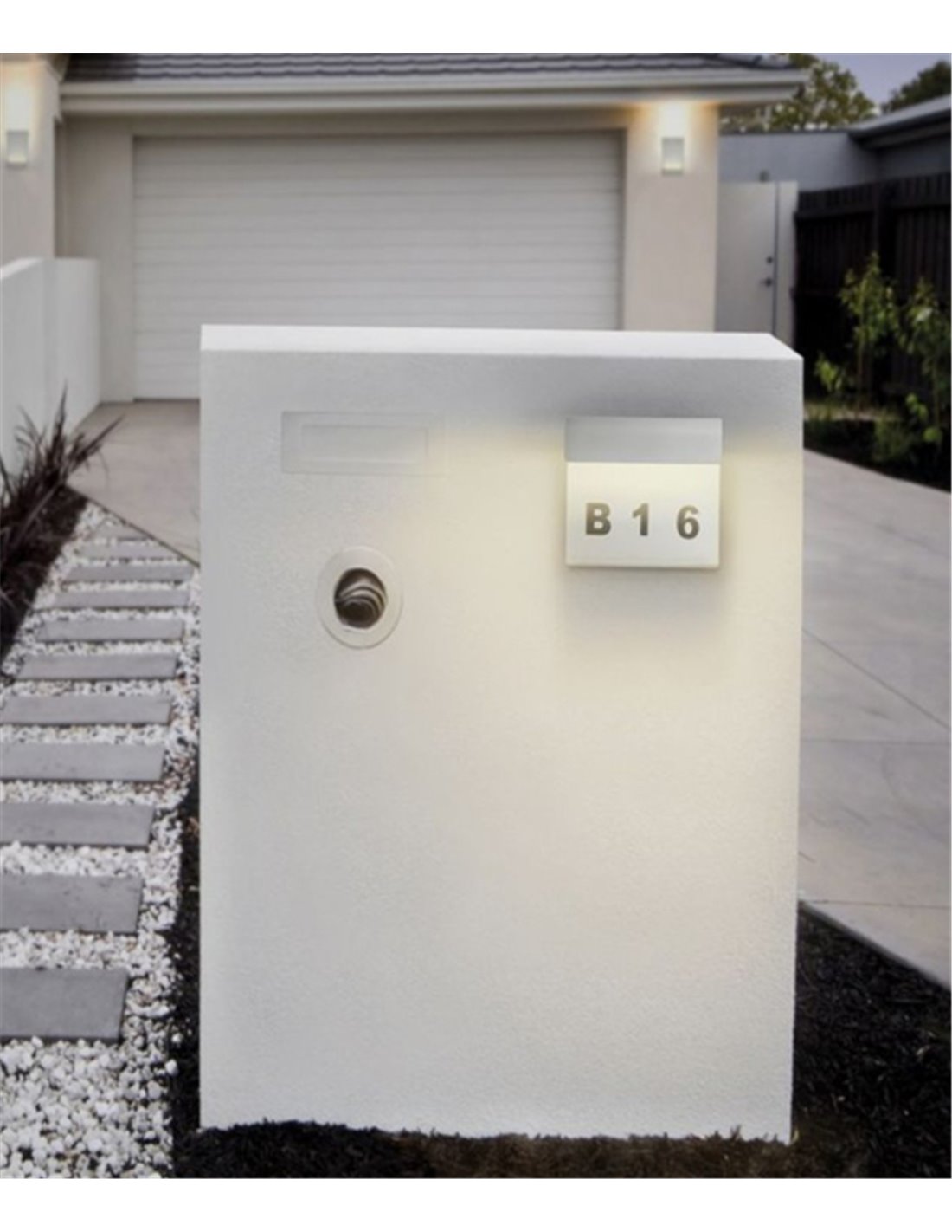 A sign combining numbers and lighting to create not only an attractive design, and due to its integrated LED system, it is visible during both the day and night. The product comes with a set of vinyl adhesive stickers and two sets of numbers from 0 to 9. Taking into account all the features of the luminaire, the product will perfectly fulfill its function of lighting up entrance areas on the exterior of the house (IP 54). It is made of white aluminum, and its light source is LED 6W 429lm 3000K – warm light, which is included.
