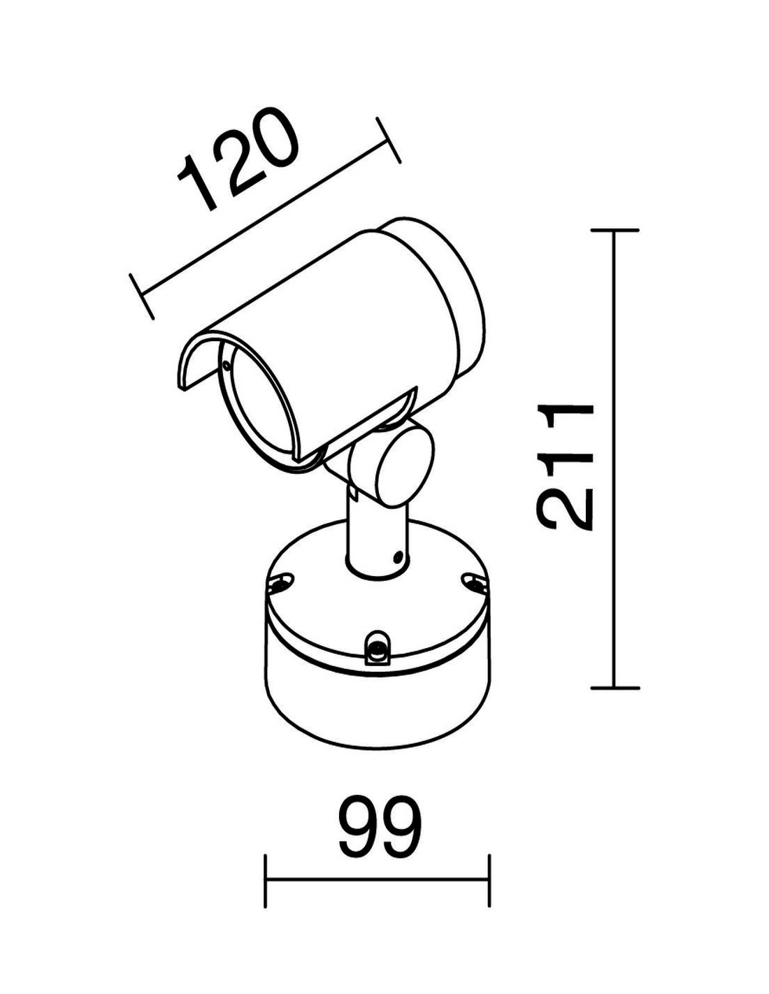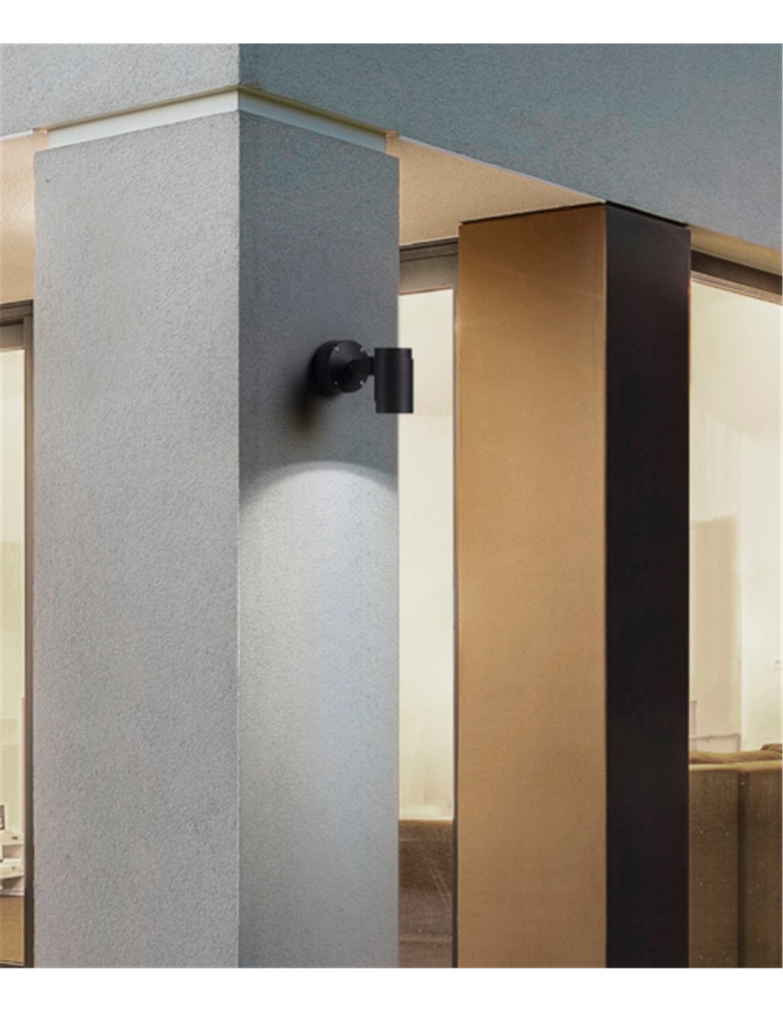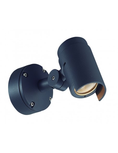 The Nagore collection is a wall-mounted projector with a 350º angle of rotation, specifically designed for outdoor use due to its IP 65 degree of protection that makes it very resistant against water and dust penetration. It is made of anthracite-finished aluminum, and serves perfectly to directly illuminate different environments in different ways due to the ease of orientation of the head. This outdoor lamp uses the light source LED COB 10W 612lm 3000K, which is included. There is another version of this product, more elongated/shorter.