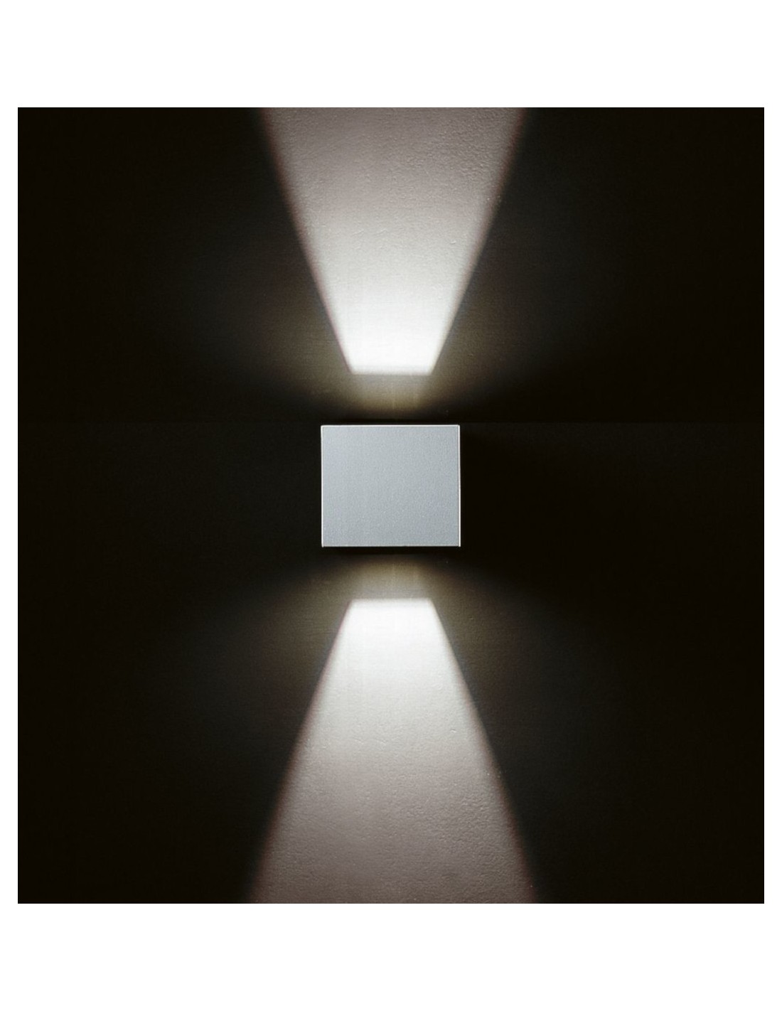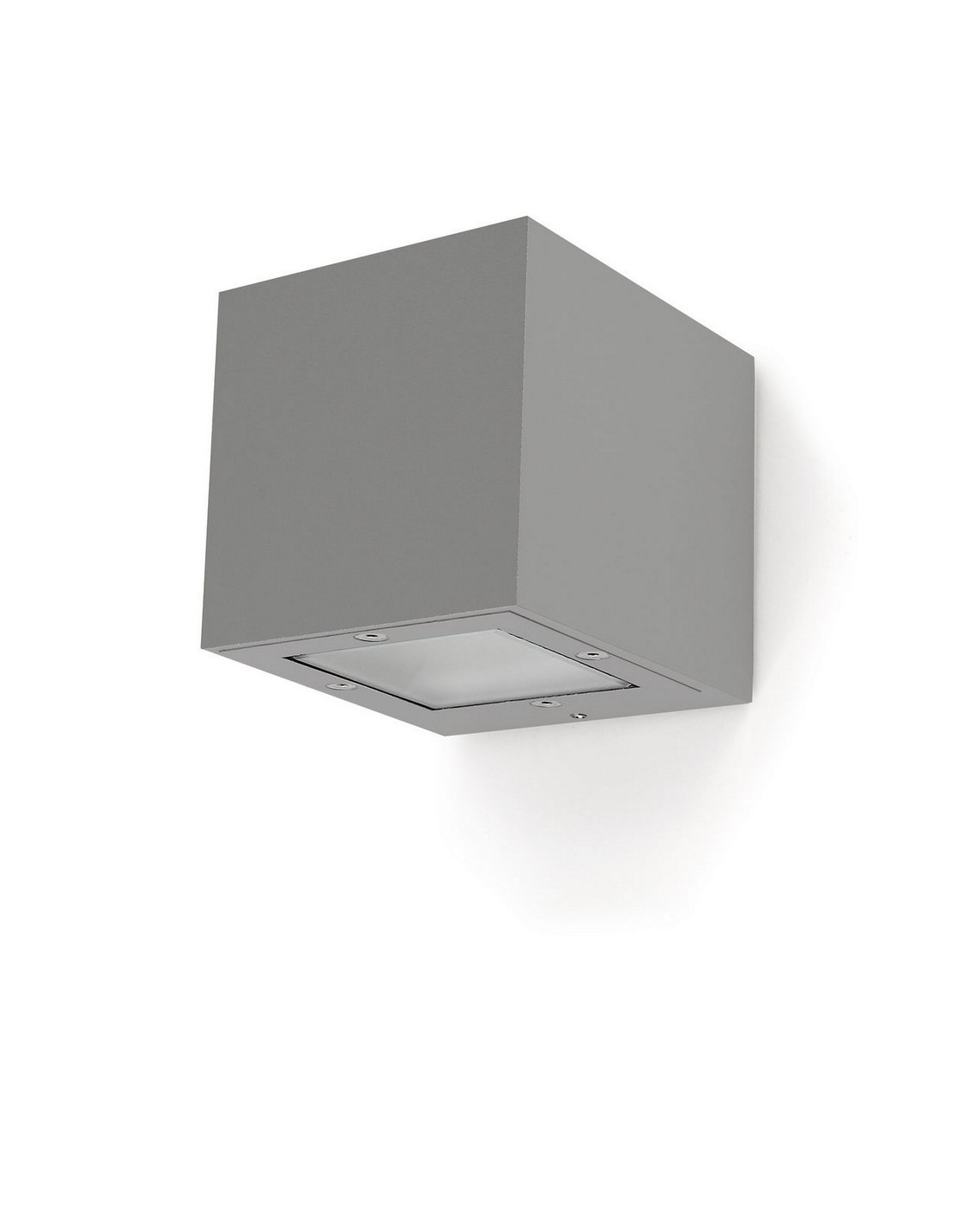 Wall lamp created from aluminum in the structure and nuanced glass in the diffuser belonging to the set of products 'Isora'. This wall surface luminaire has grounding device, resistance to the entrance of water and dust (IP 65) and to mechanized damaging impacts (IK 05) and emits both direct and indirect light. It has measures of 11x9.6 cm and a height of 8.2 cm, as well as a weight of 1.05 Kg. It is available in two different light sources: